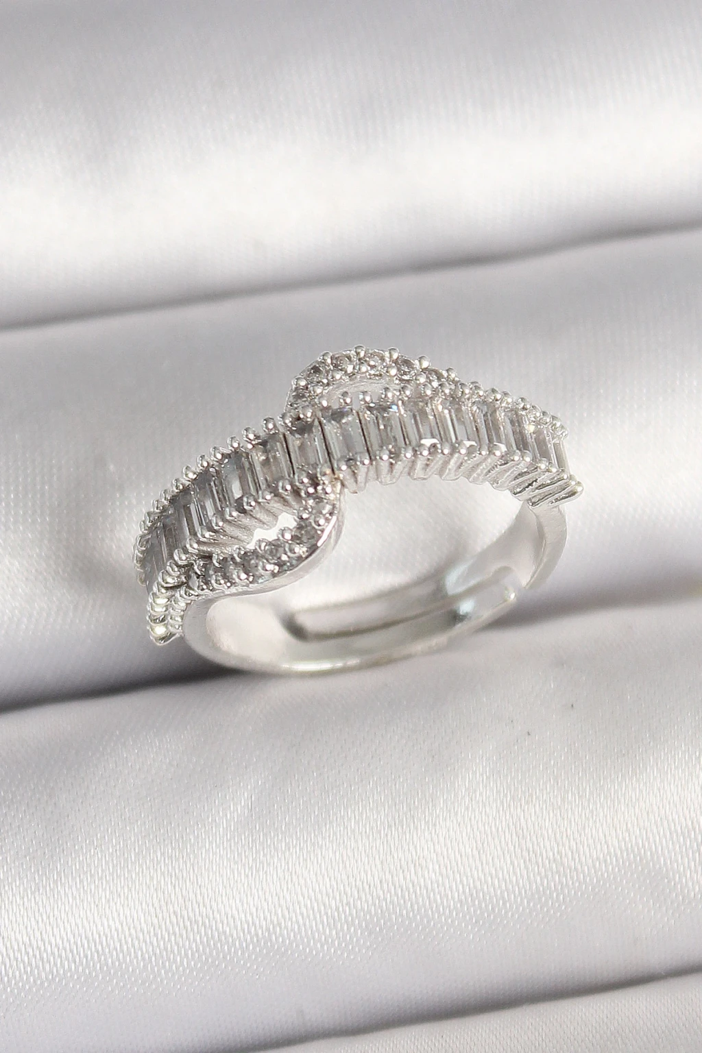 Pirinç Gümüş Renk Su Yolu Zirkon Taşlı Ayarlanabilir Model Kadın Yüzük - TJ-BYK3690