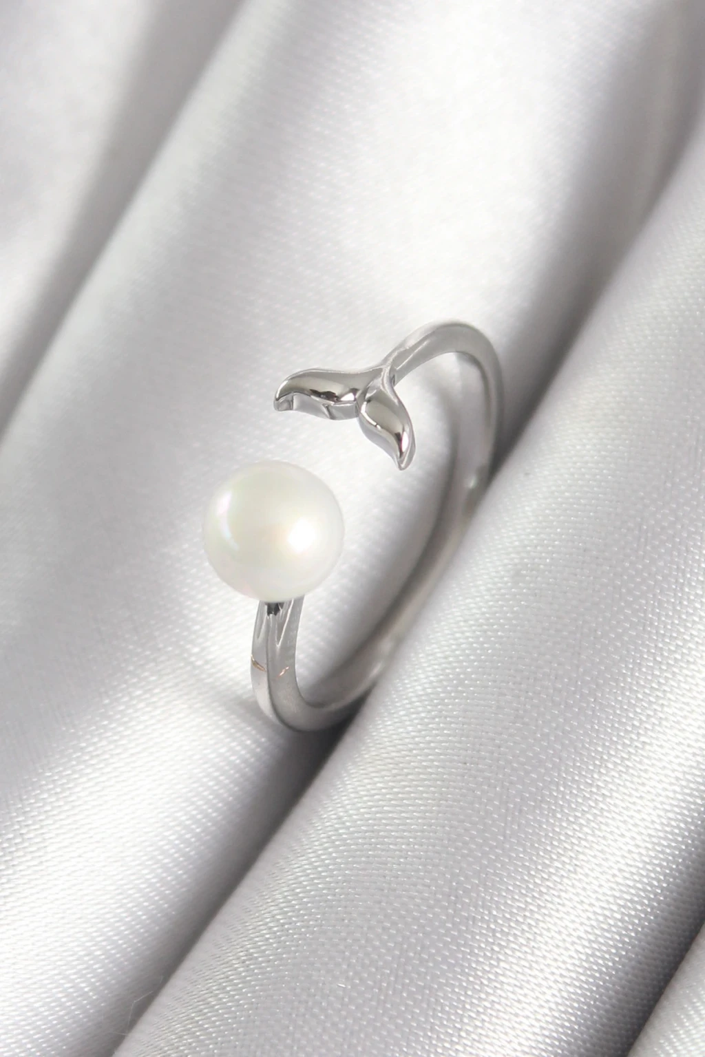 Pirinç Gümüş Renk Top İnci Figür Balık Kuyruğu Model Kadın Yüzük - TJ-BYK3075