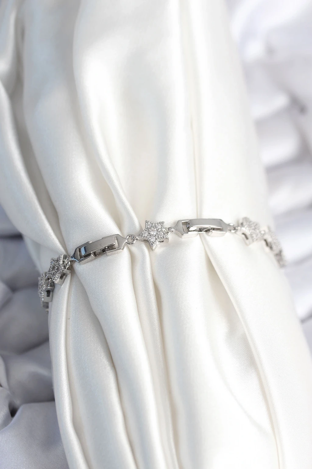 Pirinç Gümüş Renk Yıldız Model Kadın Bileklik - TJ-BB7979