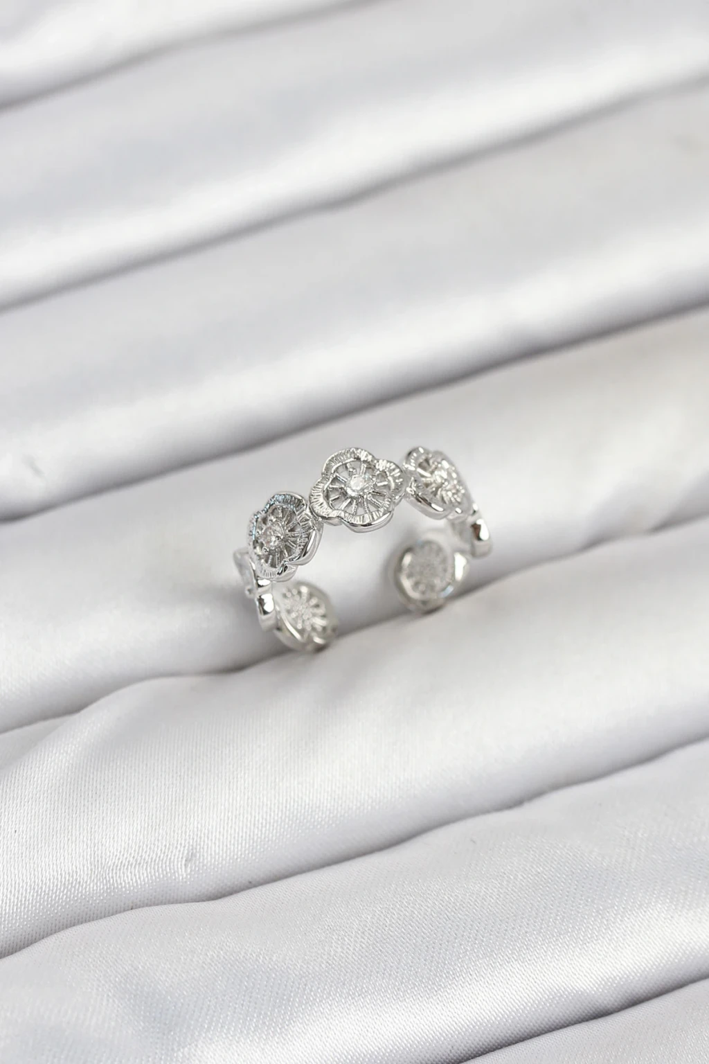 Pirinç Gümüş Renk Yonca Model Kadın Yüzük - TJ-BYK3895