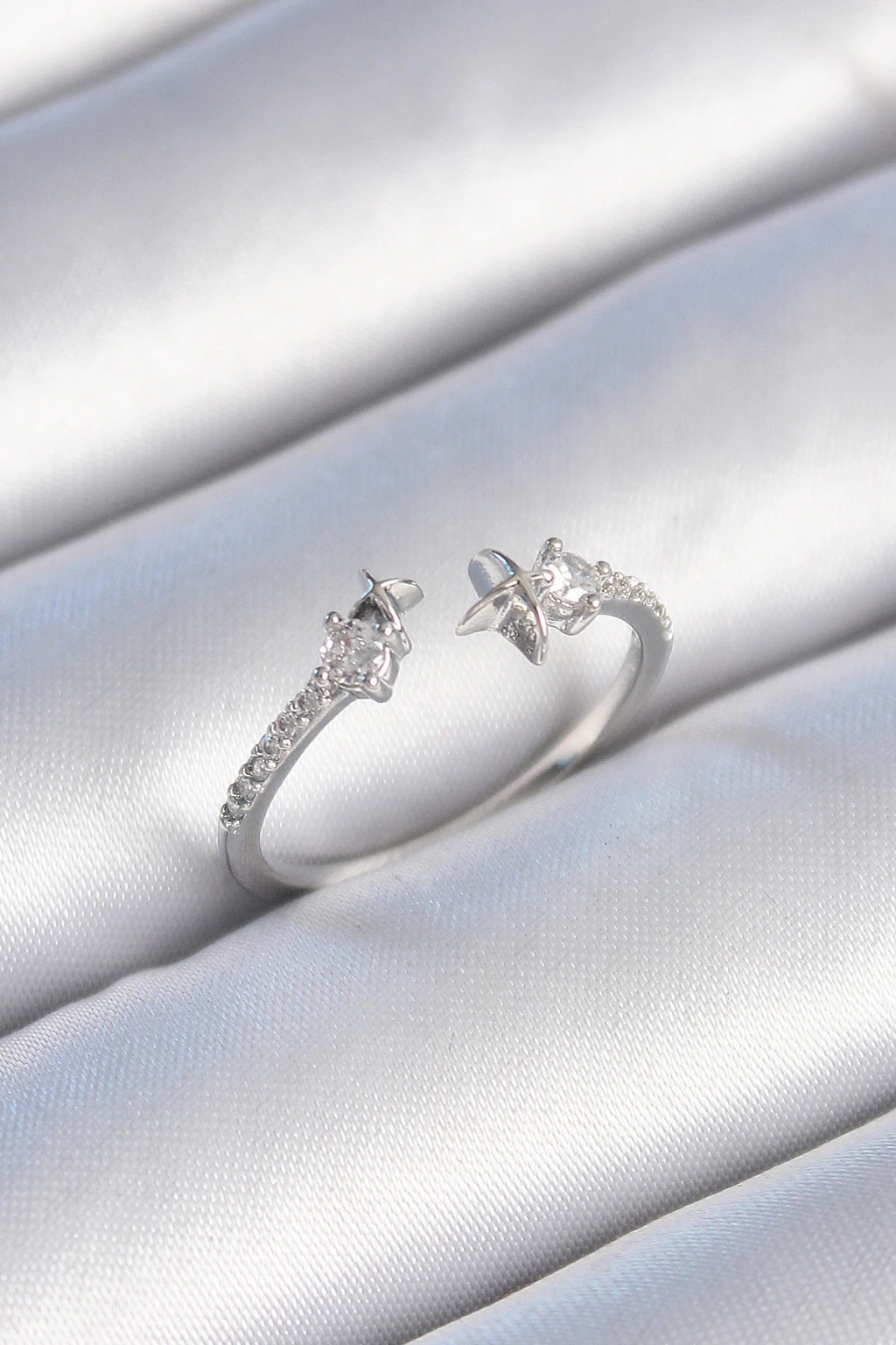 Pirinç Gümüş Renk Zirkon Taş Detay Yıldız Model Kadın Yüzük - TJ-BYK3447