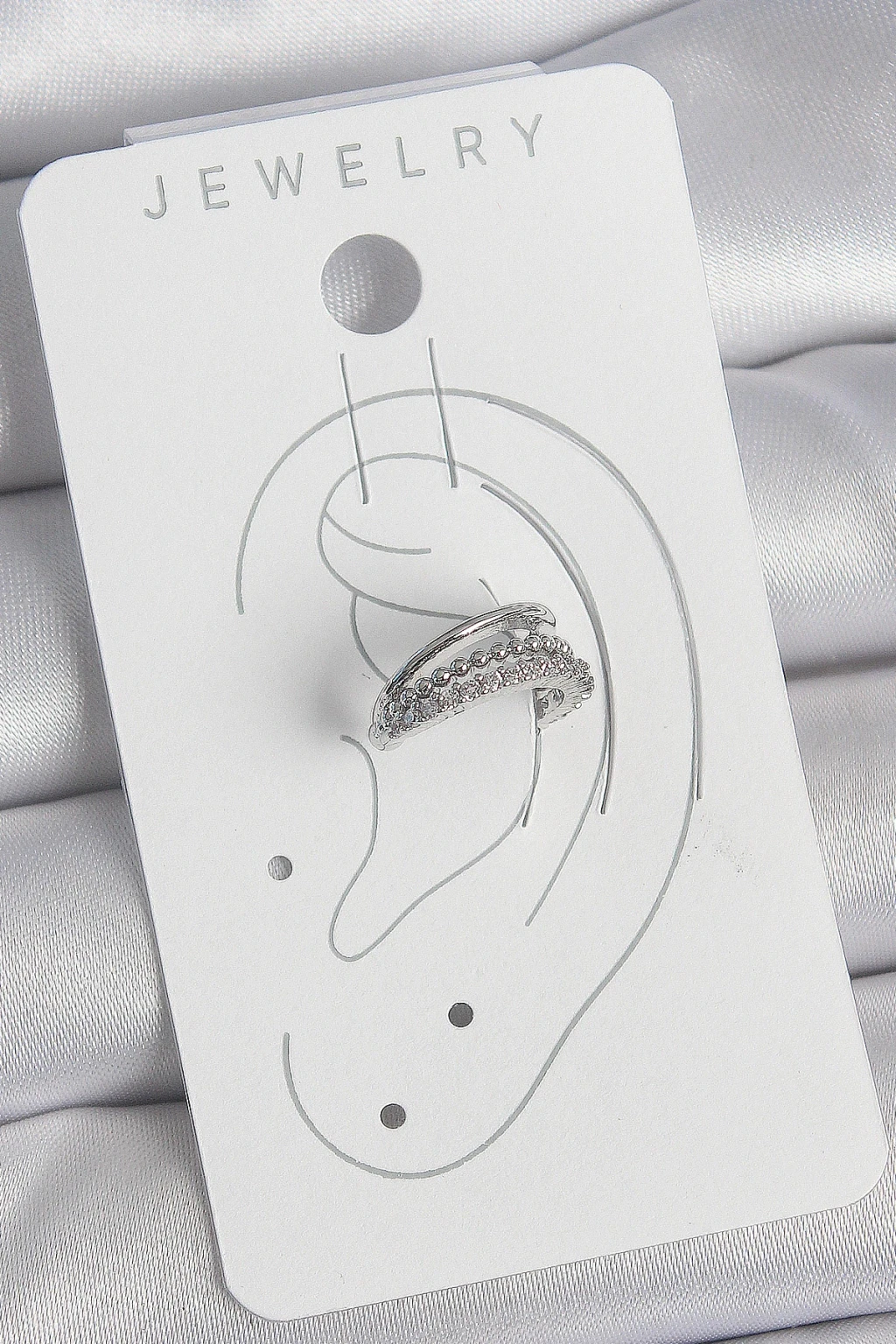 Pirinç Gümüş Renk Zirkon Taşlı 3'Lü Sıralı Kadın Kıkırdak Küpe - TJ-BKP10554