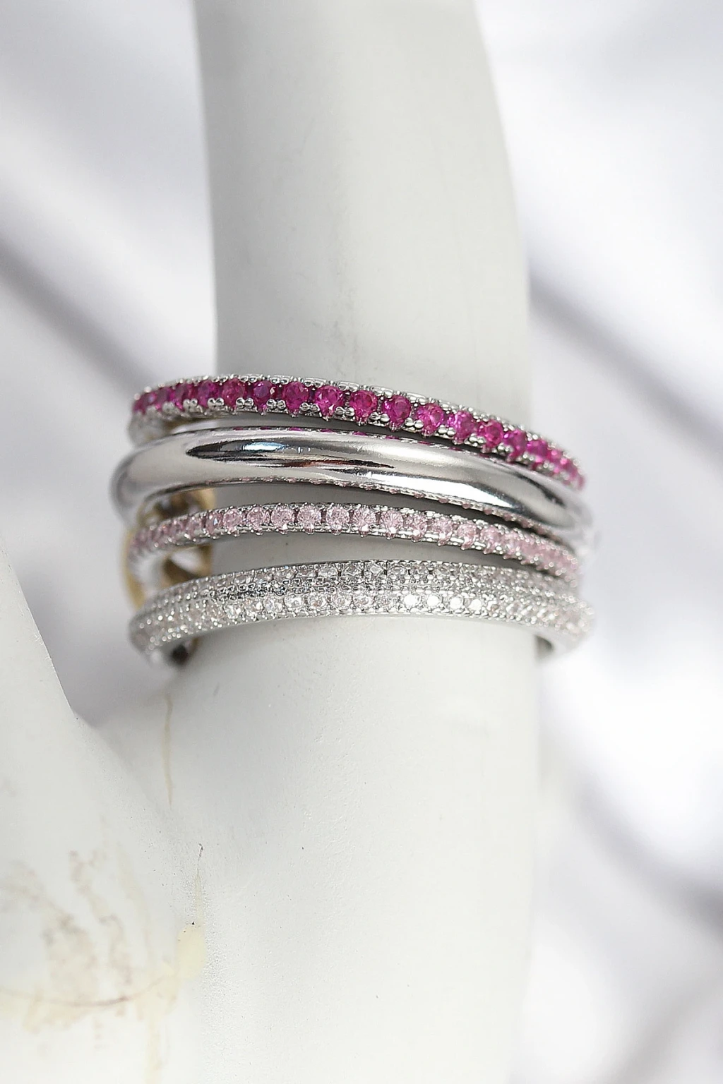 Pirinç Gümüş Renk Renkli Zirkon Taşlı Ayarlamalı Yüzük - TJ-BYK3270