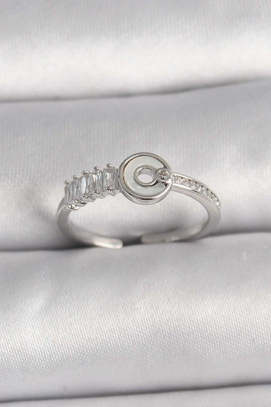 Pirinç Gümüş Renk Zirkon Taşlı Ayarlanabilir Kadın Yüzük - TJ-BYK3562