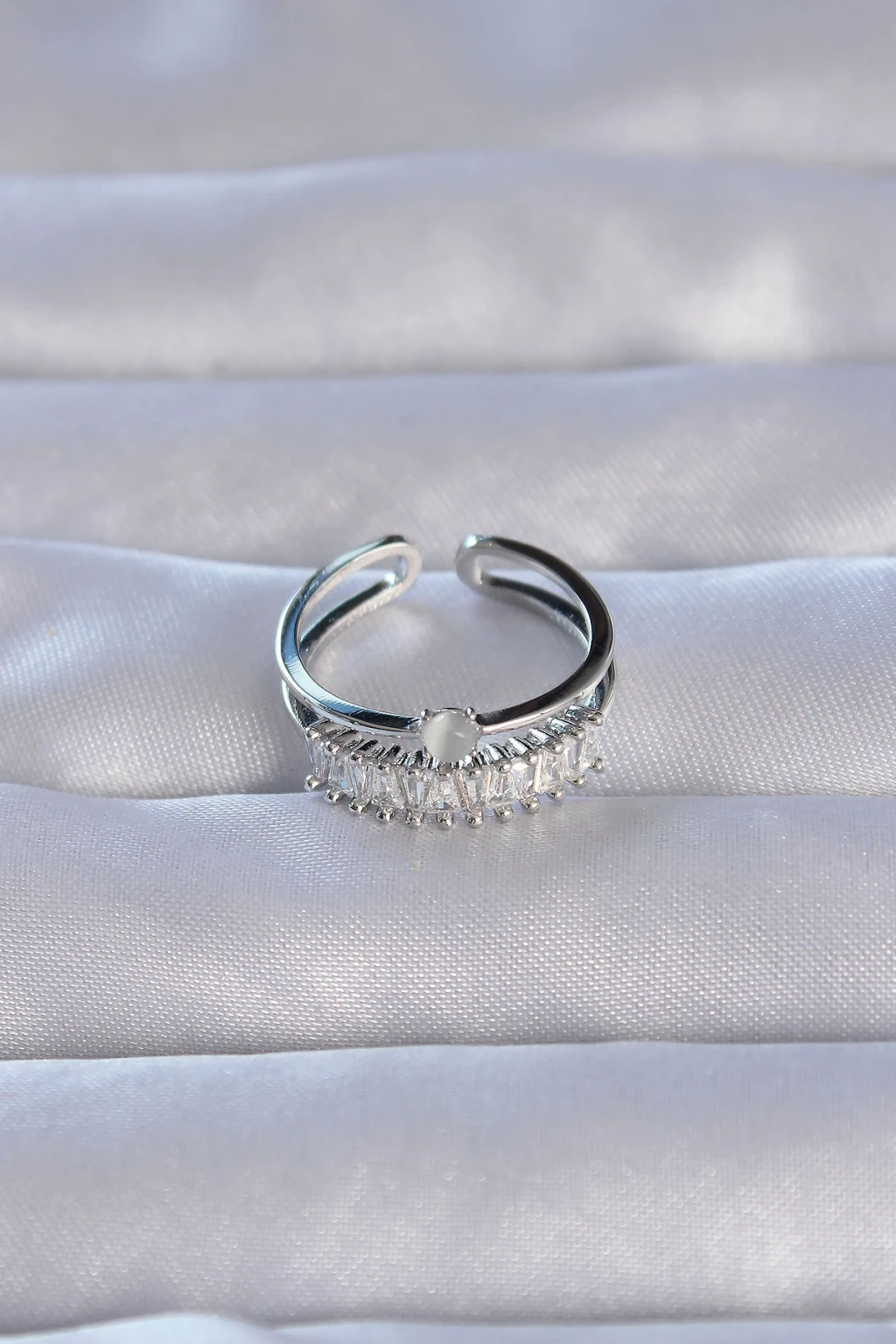 Pirinç Gümüş Renk Zirkon Taşlı Baget Su Yolu Model Ayarlanabilir Yüzük - TJ-BYK3228