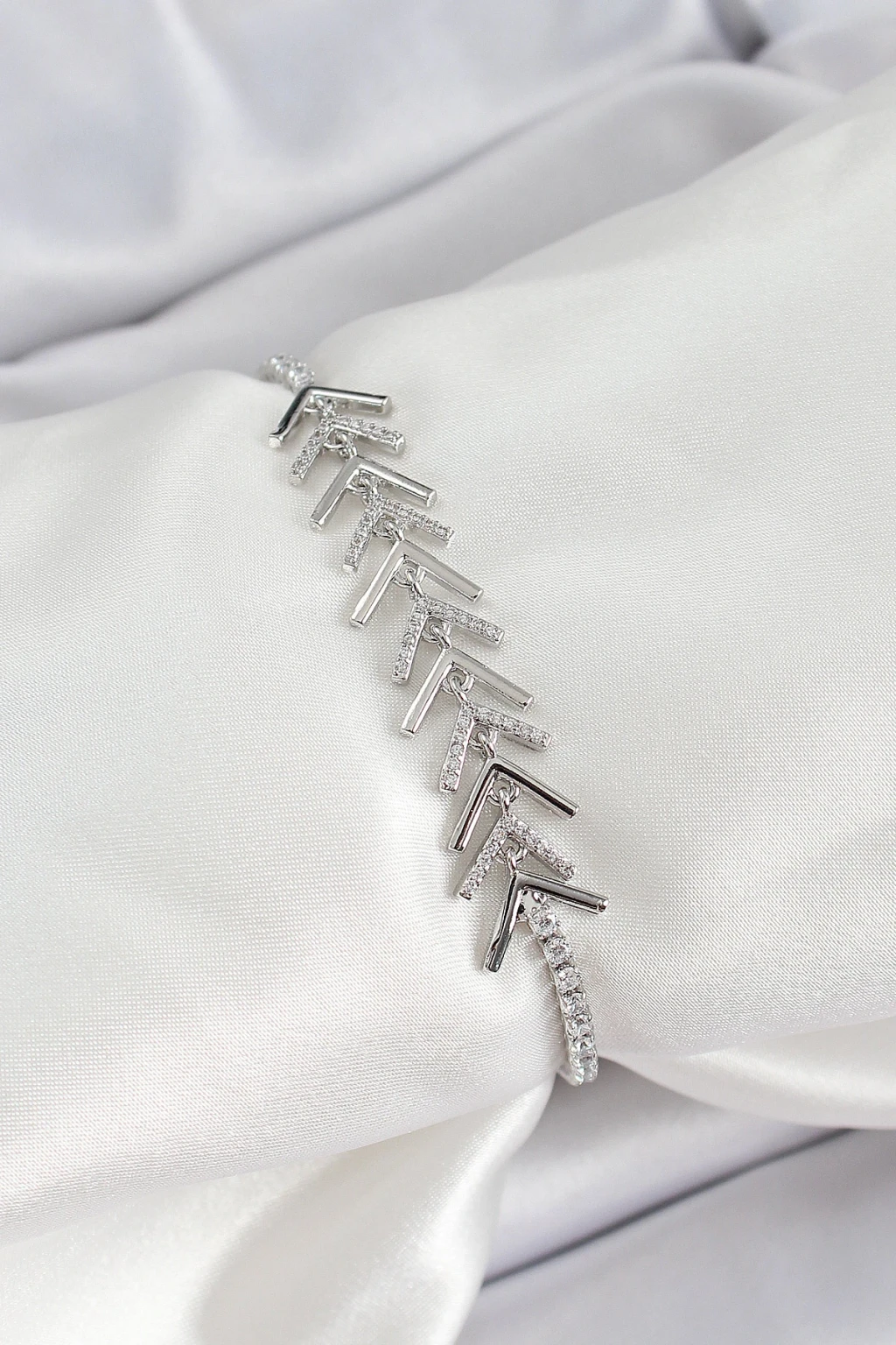 Pirinç Gümüş Renk Zirkon Taşlı Balık Sırtı Kadın Bileklik - TJ-BB7069