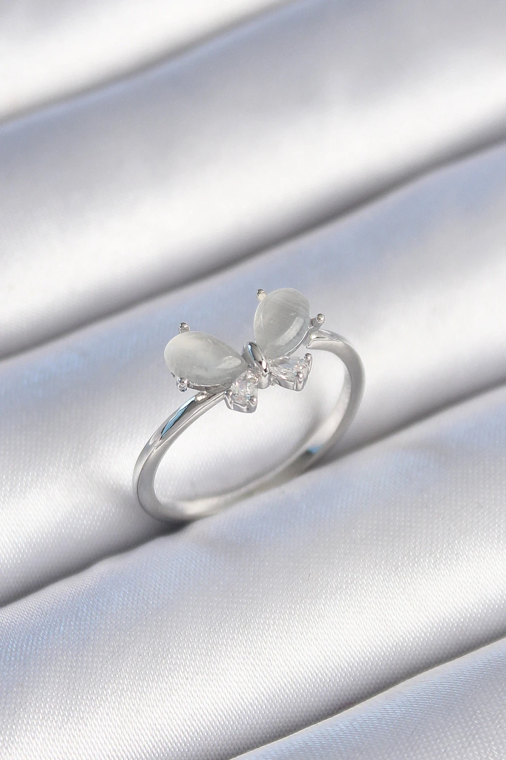 Pirinç Gümüş Renk Zirkon Taşlı Beyaz Mineli Kelebek Model Kadın Yüzük - TJ-BYK3465