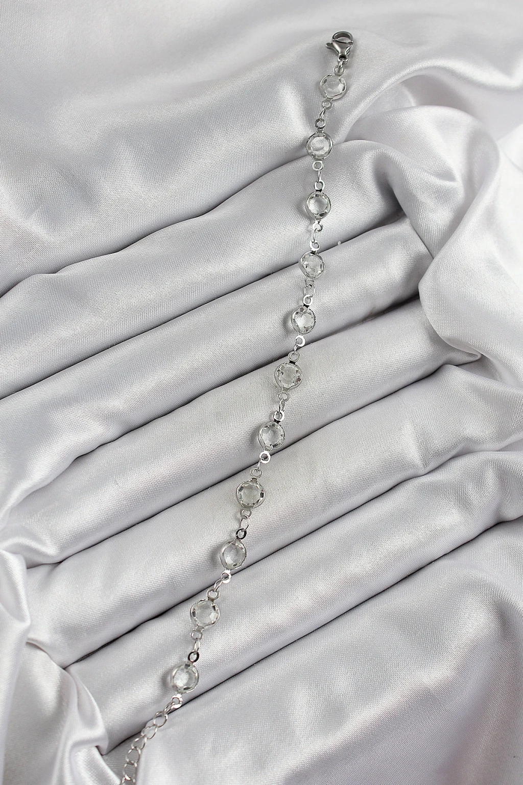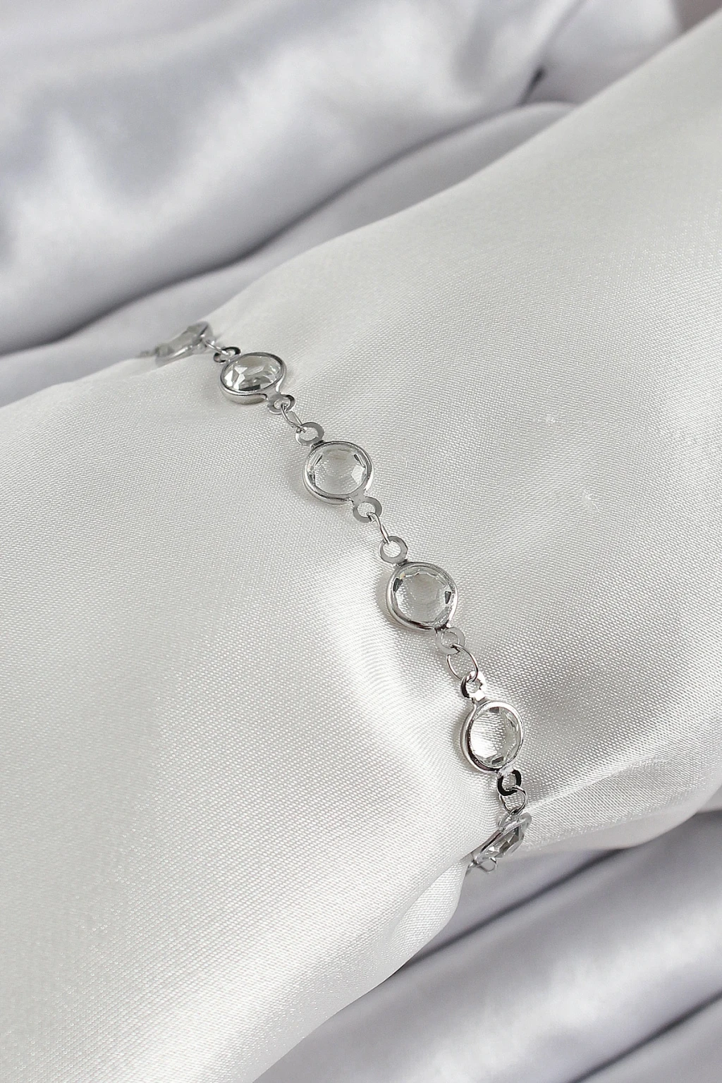 Pirinç Gümüş Renk Zirkon Taşlı Bileklik - TJ-BB7044