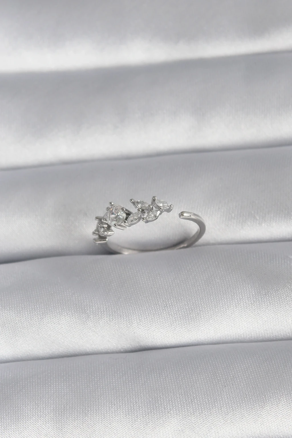 Pirinç Gümüş Renk Zirkon Taşlı Çiçek Model Kadın Yüzük - TJ-BYK3014