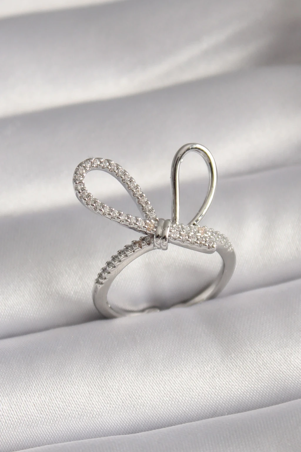 Pirinç Gümüş Renk Zirkon Taşlı Düğüm Model Kadın Yüzük - TJ-BYK3086
