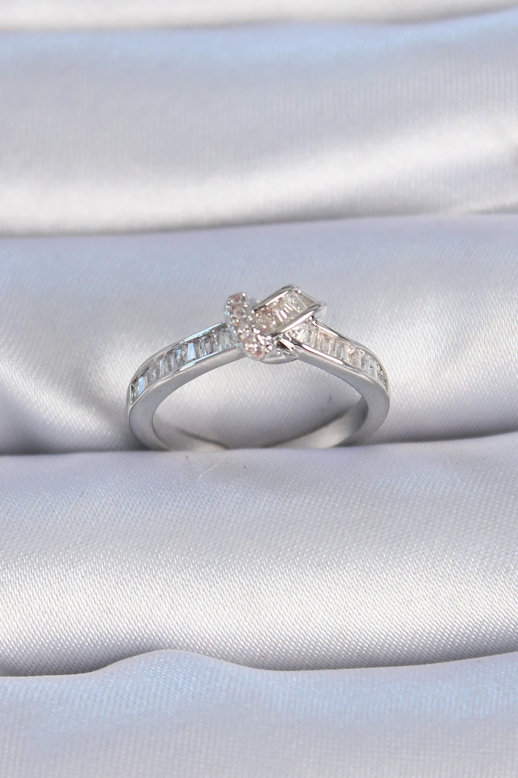 Pirinç Gümüş Renk Zirkon Taşlı Düğüm Model Kadın Yüzük - TJ-BYK3345