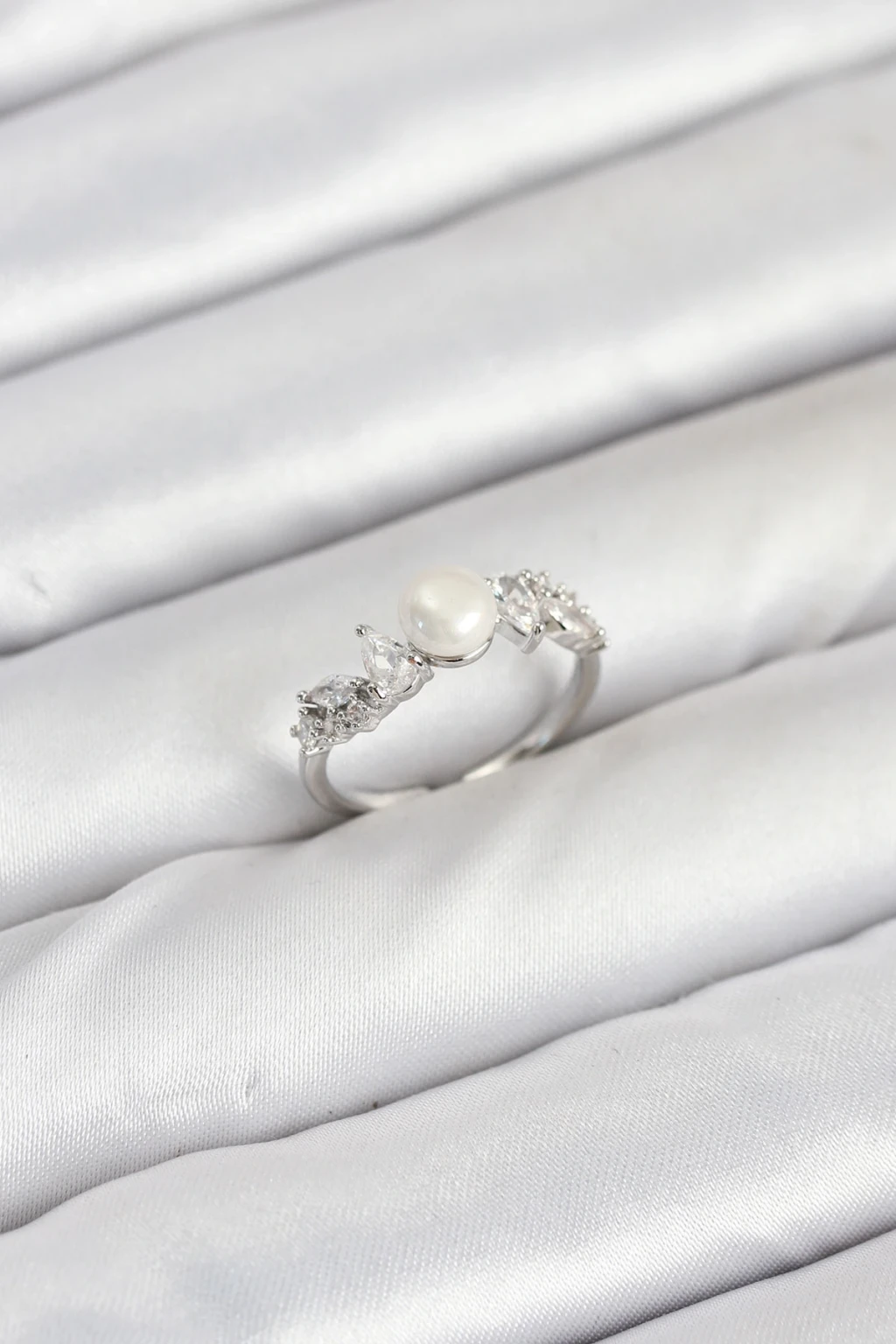 Pirinç Gümüş Renk Zirkon Taşlı İncili Model Kadın Yüzük - TJ-BYK3853