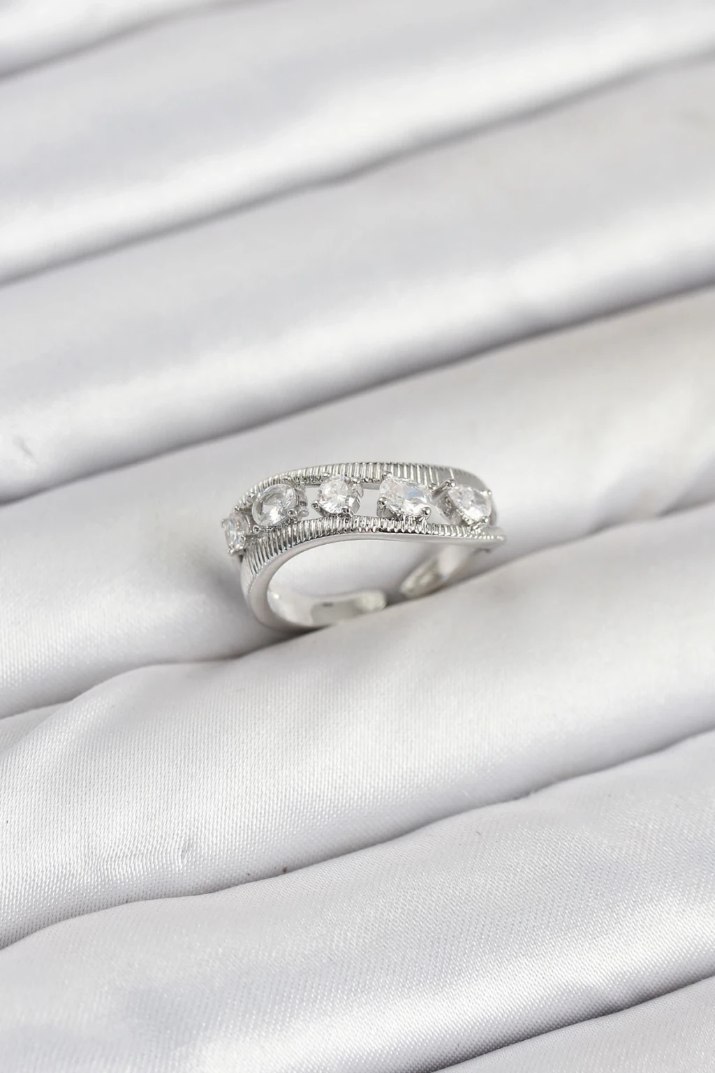 Gümüş Renk Şerit Zirkon Taşlı Kadın Yüzük - TJ-BYK3904