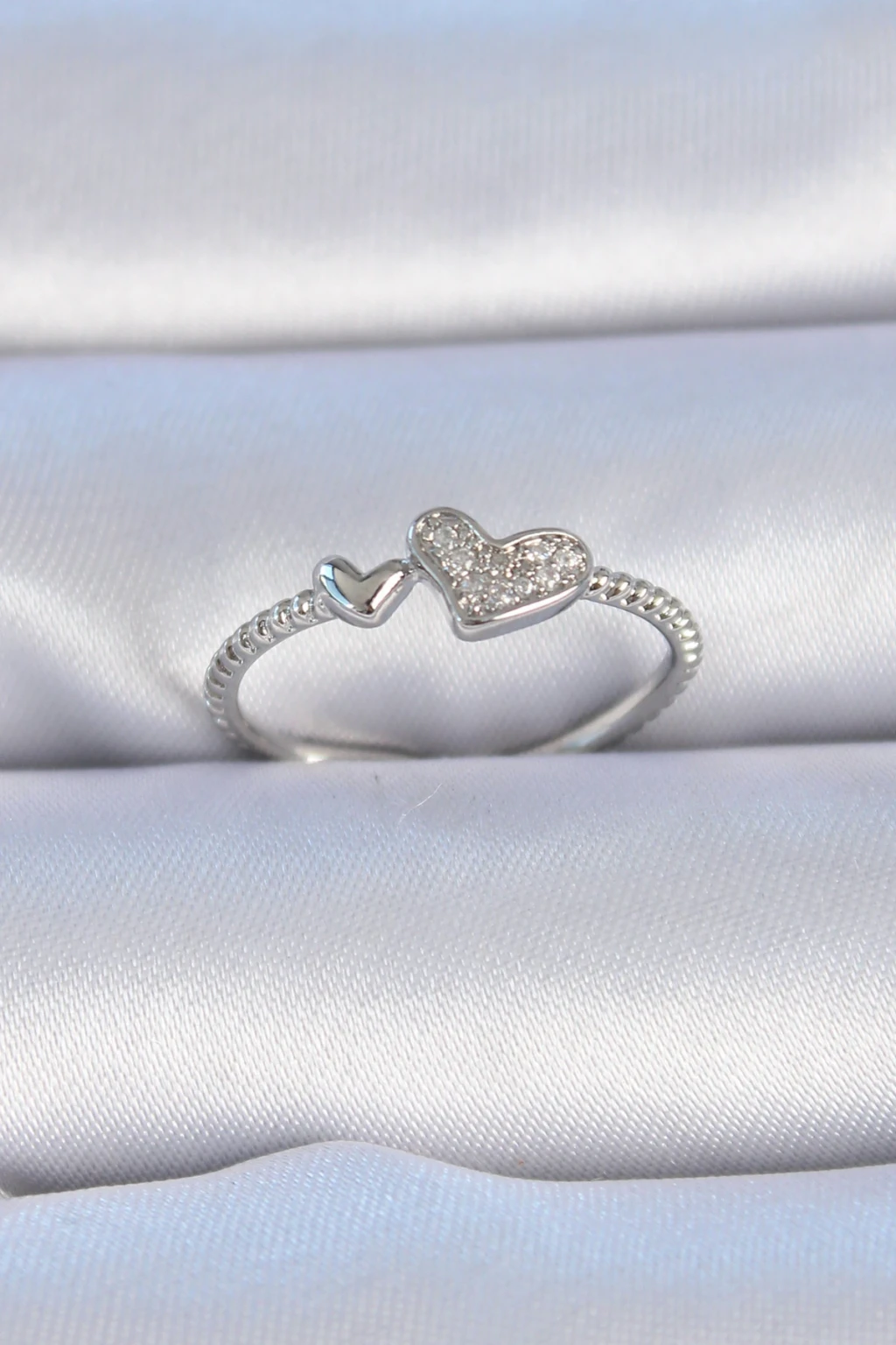 Pirinç Gümüş Renk Zirkon Taşlı Kalp Model Kadın Yüzük - TJ-BYK3307