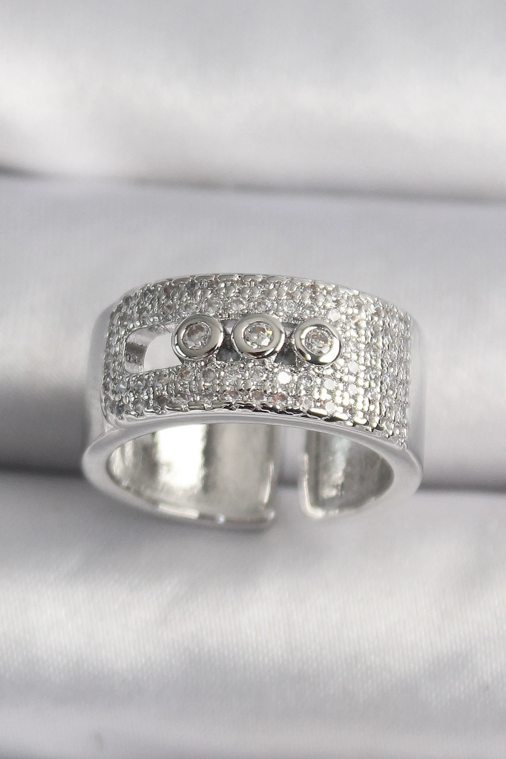 Gümüş Renk Şerit Zirkon Taşlı Kadın Yüzük - TJ-BYK3904