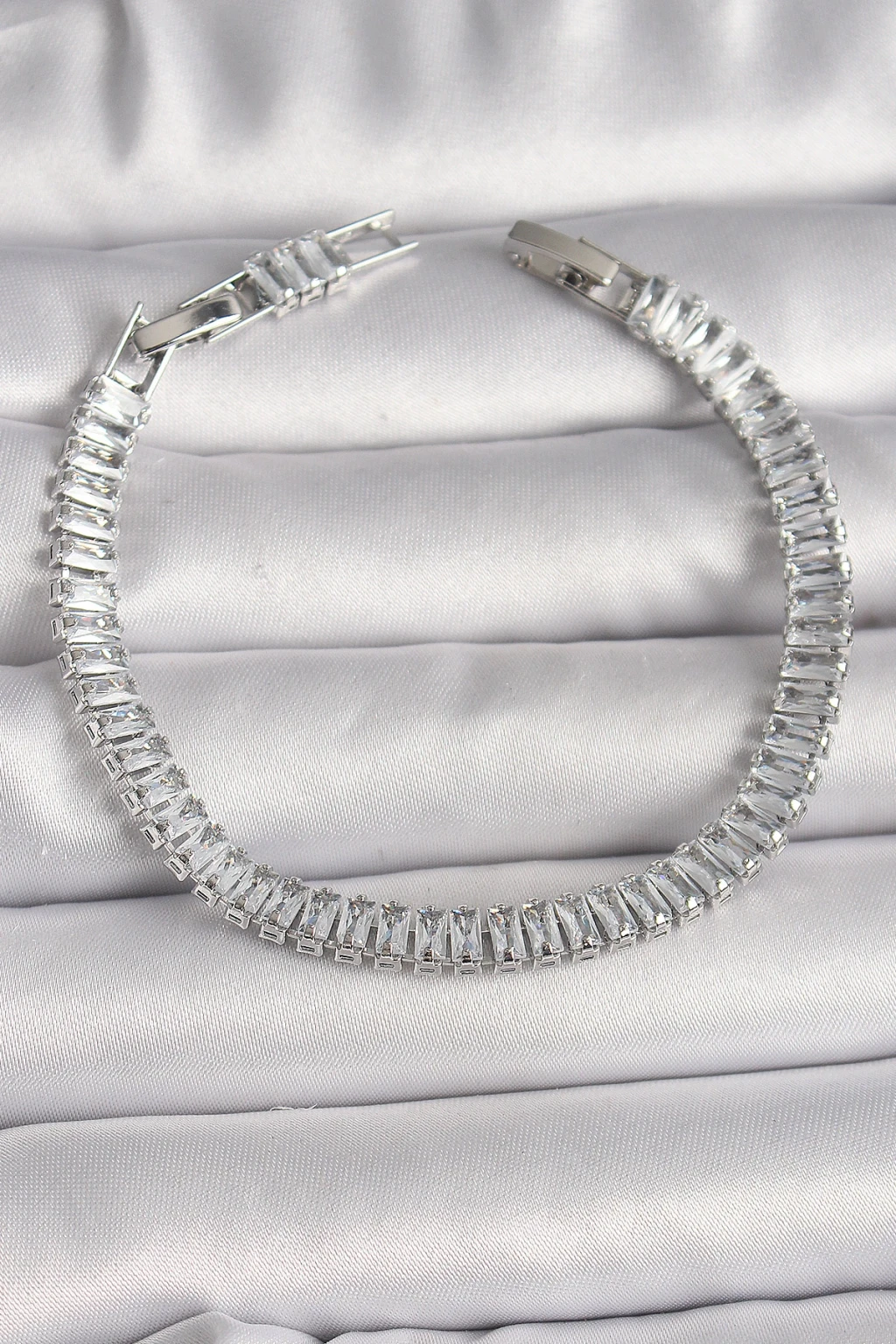 Pirinç Gümüş Renk Zirkon Taşlı Su Yolu Model Kadın Bileklik - TJ-BB6726