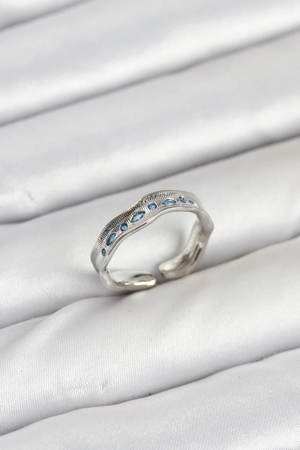 Pirinç Gümüş Renk Renkli Zirkon Taşlı Ayarlamalı Yüzük - TJ-BYK3256