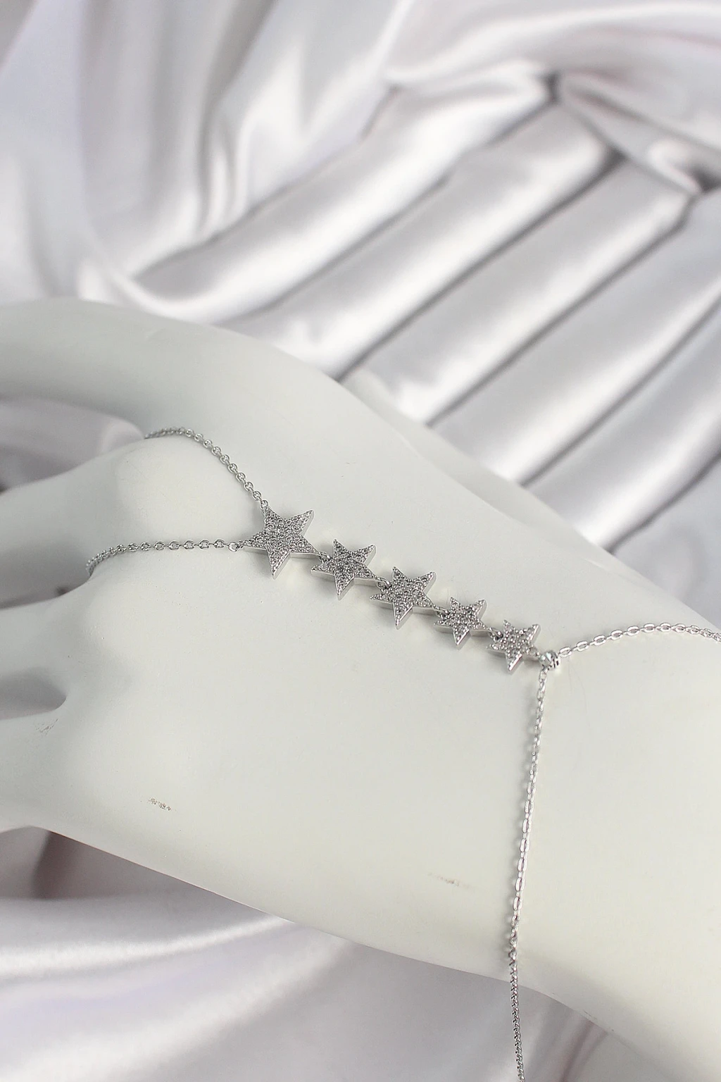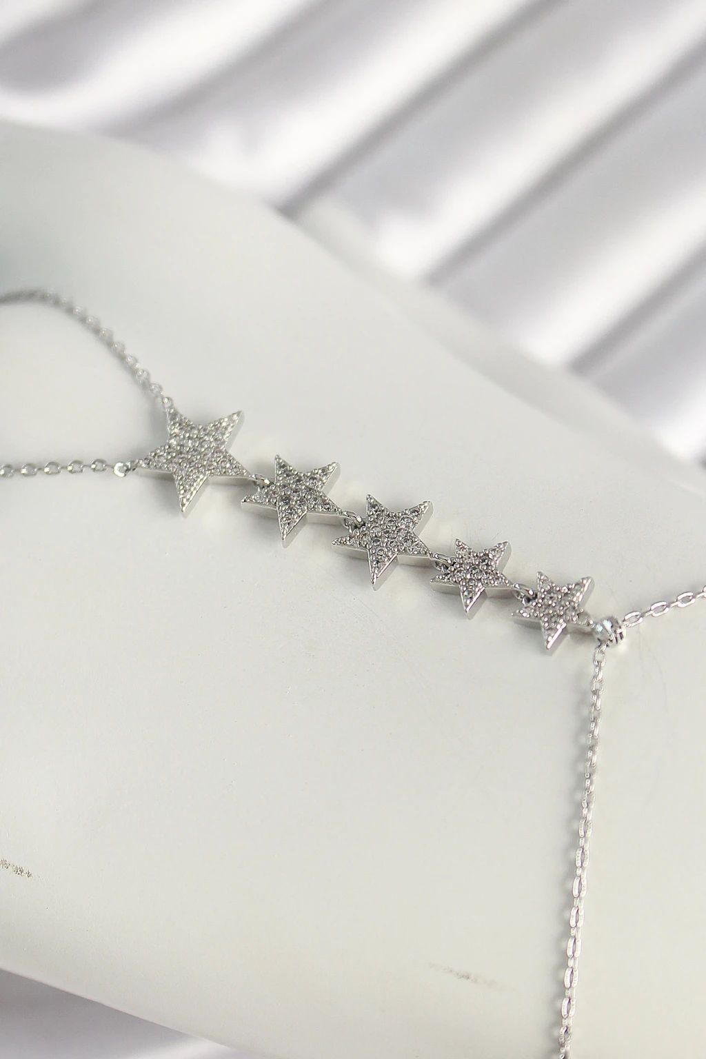 Pirinç Gümüş Renk Zirkon Taşlı Yıldız Model Kadın Şahmeran - TJ-SN616