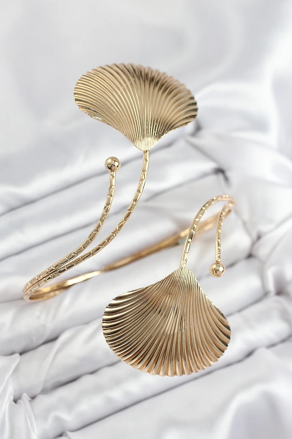Pirinç İstiridye Model Gold Renk Kadın Pazu Bileklik - TJ-BB7798