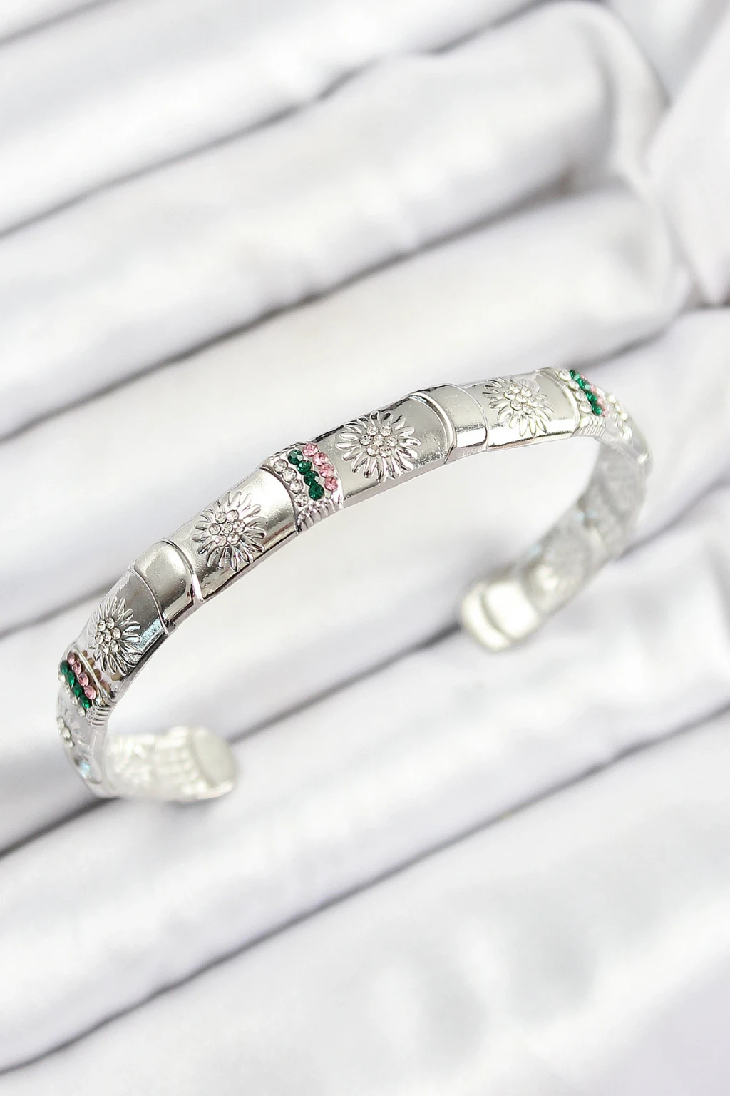 Pirinç Karışık Zirkon Taşlı Çiçek Model Gümüş Renk Altı Açık Kadın Bileklik - TJ-BB7217
