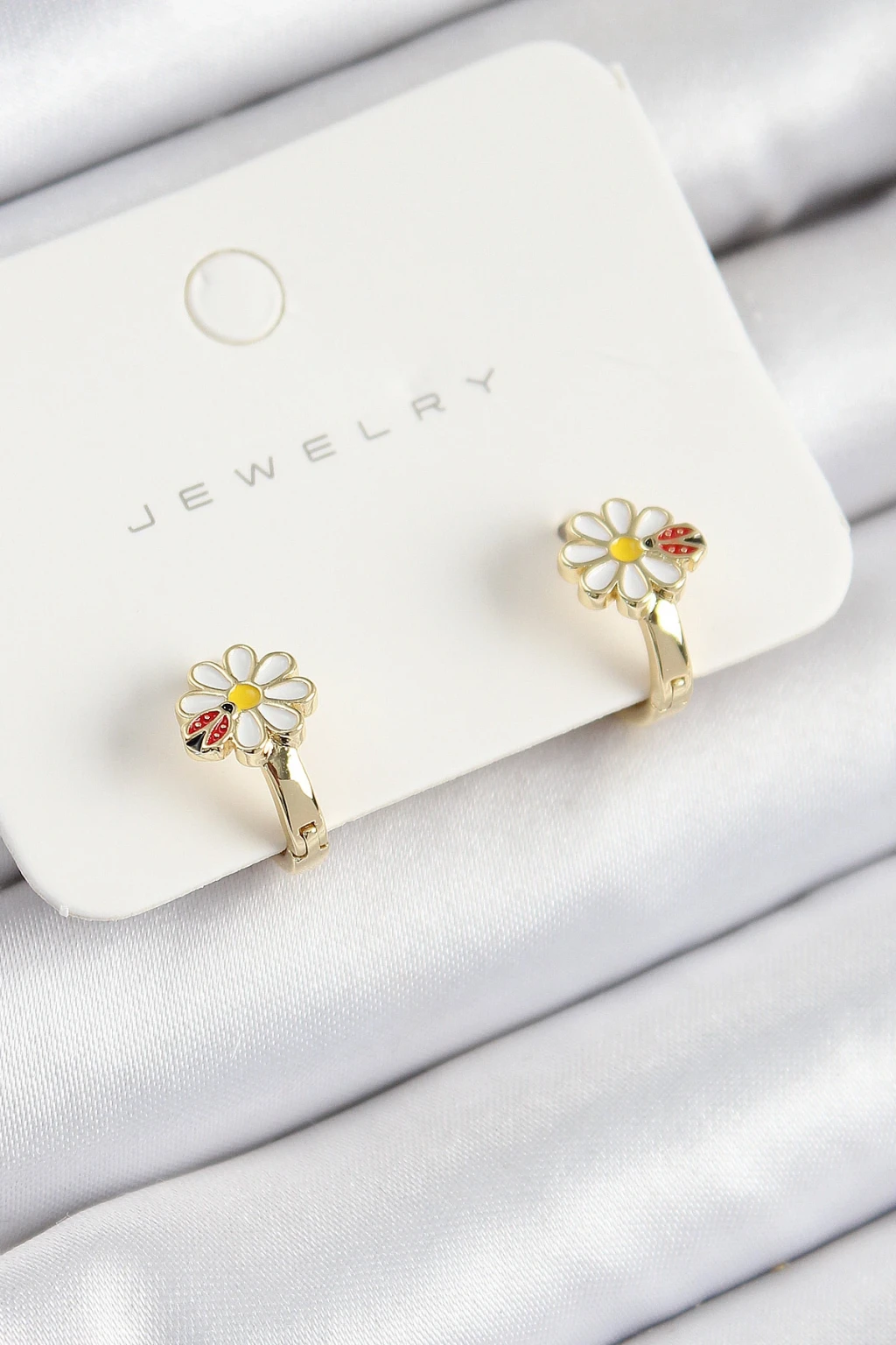 Pirinç Papatya Model Gold Renk Çocuk Küpe - TJ-BKP10903
