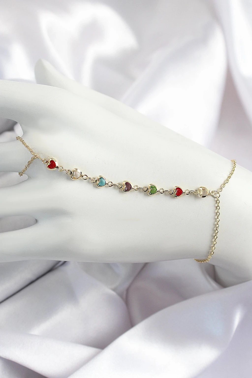 316L Çelik Gold Renk Renkli Zirkon Taşlı Kalp Halhal - TJ-HH1609