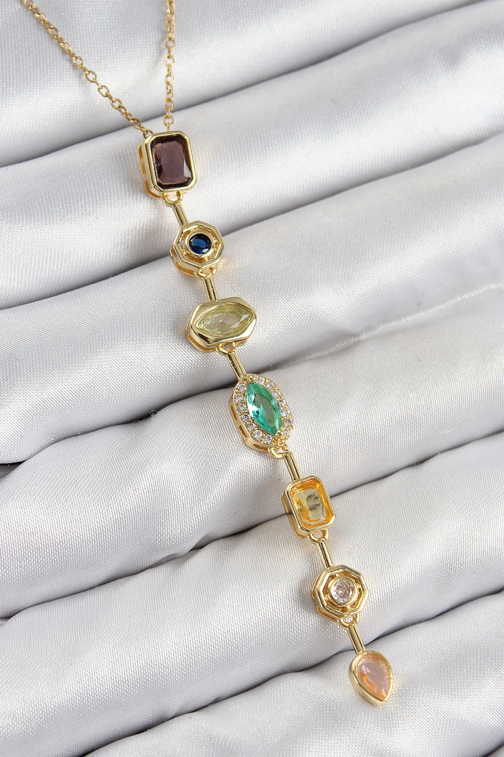 Pirinç Renkli Zirkon Taşlı Model Gold Renk Kadın Y Kolye - TJ-BKO10439
