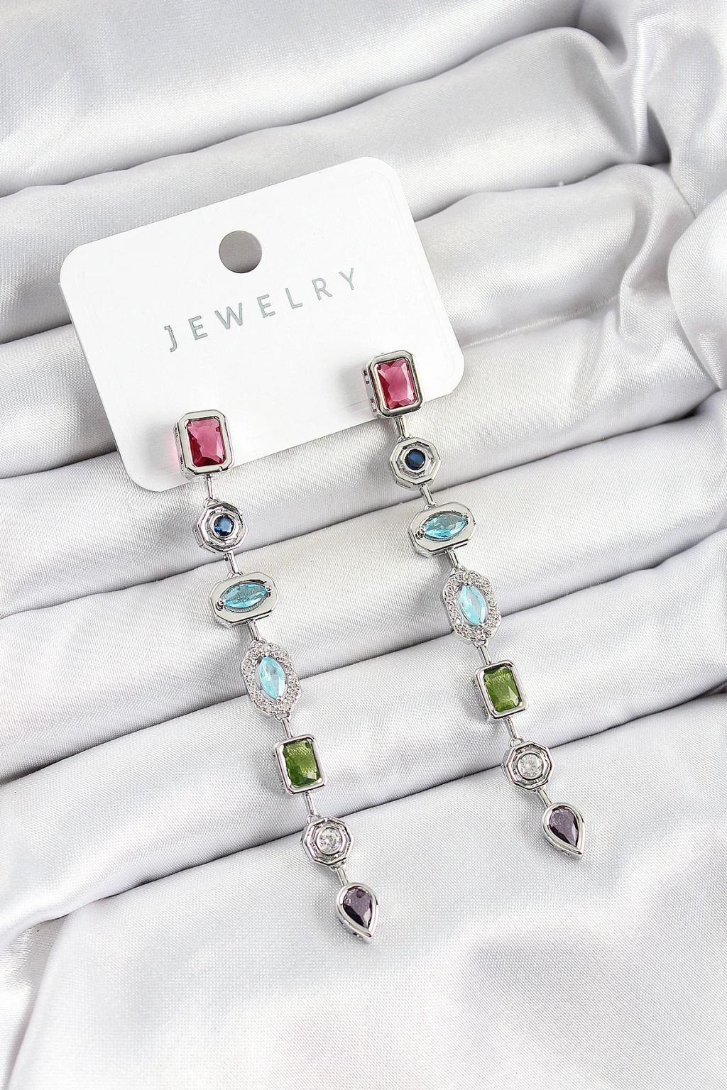 Pirinç Renkli Zirkon Taşlı Sallantılı Model Gümüş Renk Kadın Küpe - TJ-BKP10743