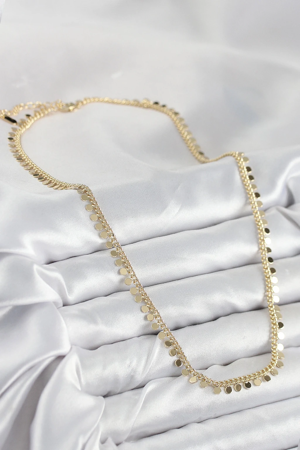 Pirinç Sıralı Pul Zincir Model Gold Renk Kadın Kolye - TJ-BKO10489
