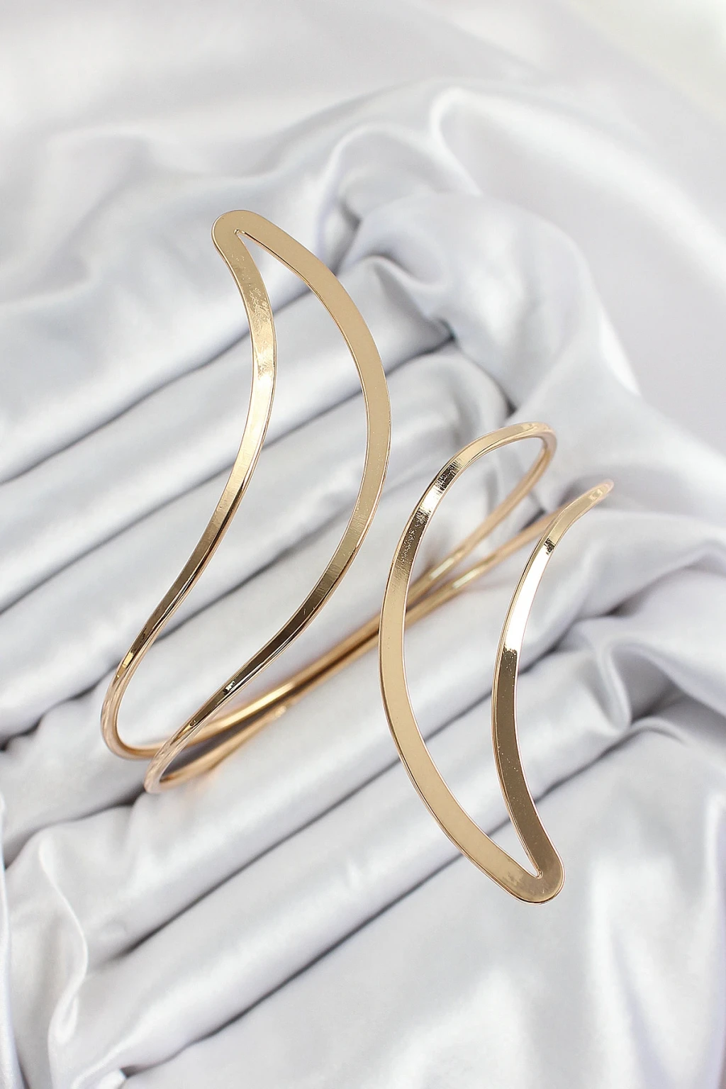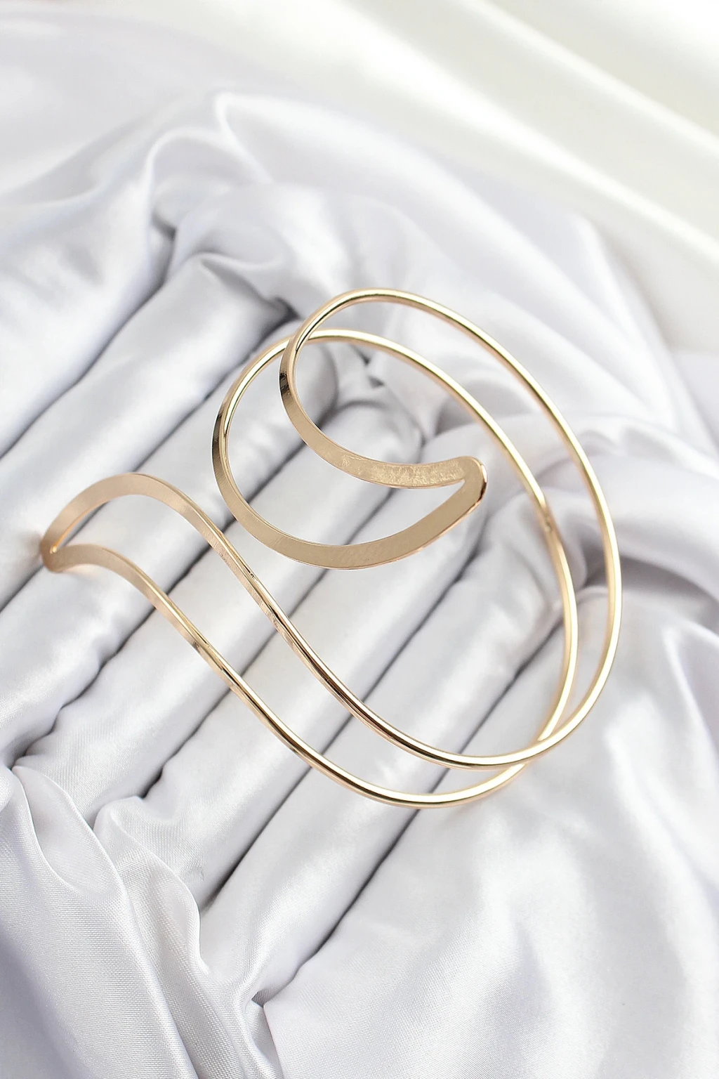 Pirinç Soyut Alev Desenli Gold Renk Kadın Pazu Bileklik - TJ-BB7199