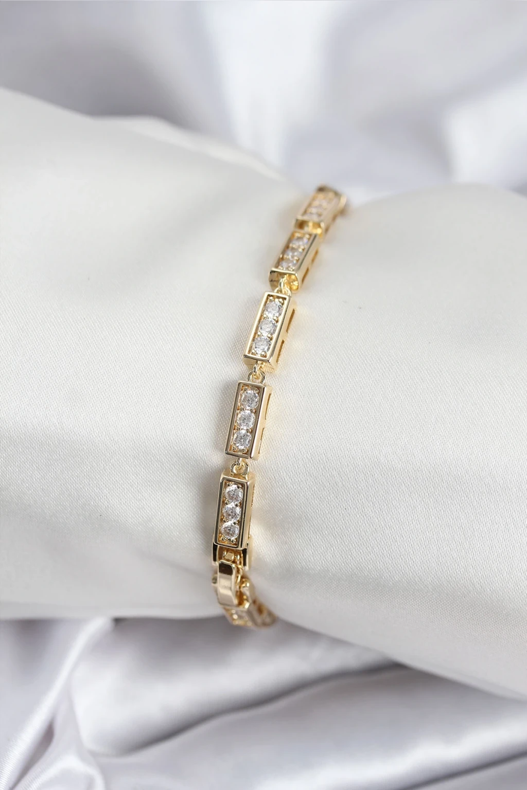 Pirinç VIP Seri Gold Renk Parçalı Model Kadın Bileklik - TJ-BB7930