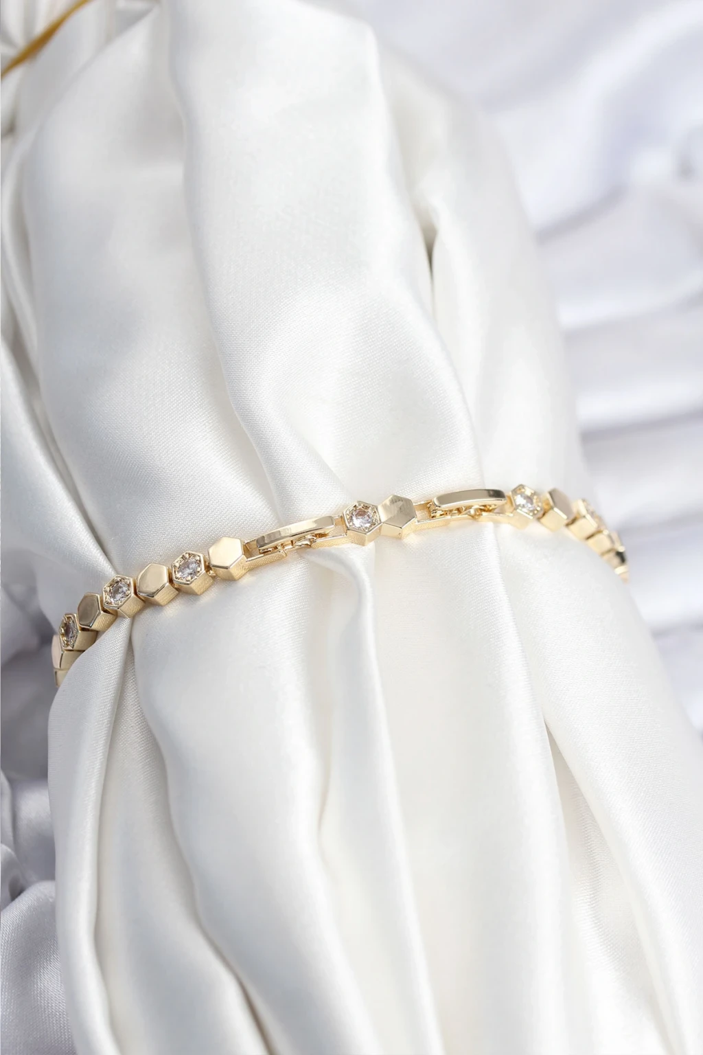 Pirinç VIP Seri Gold Renk Petek Model Kadın Bileklik - TJ-BB7925