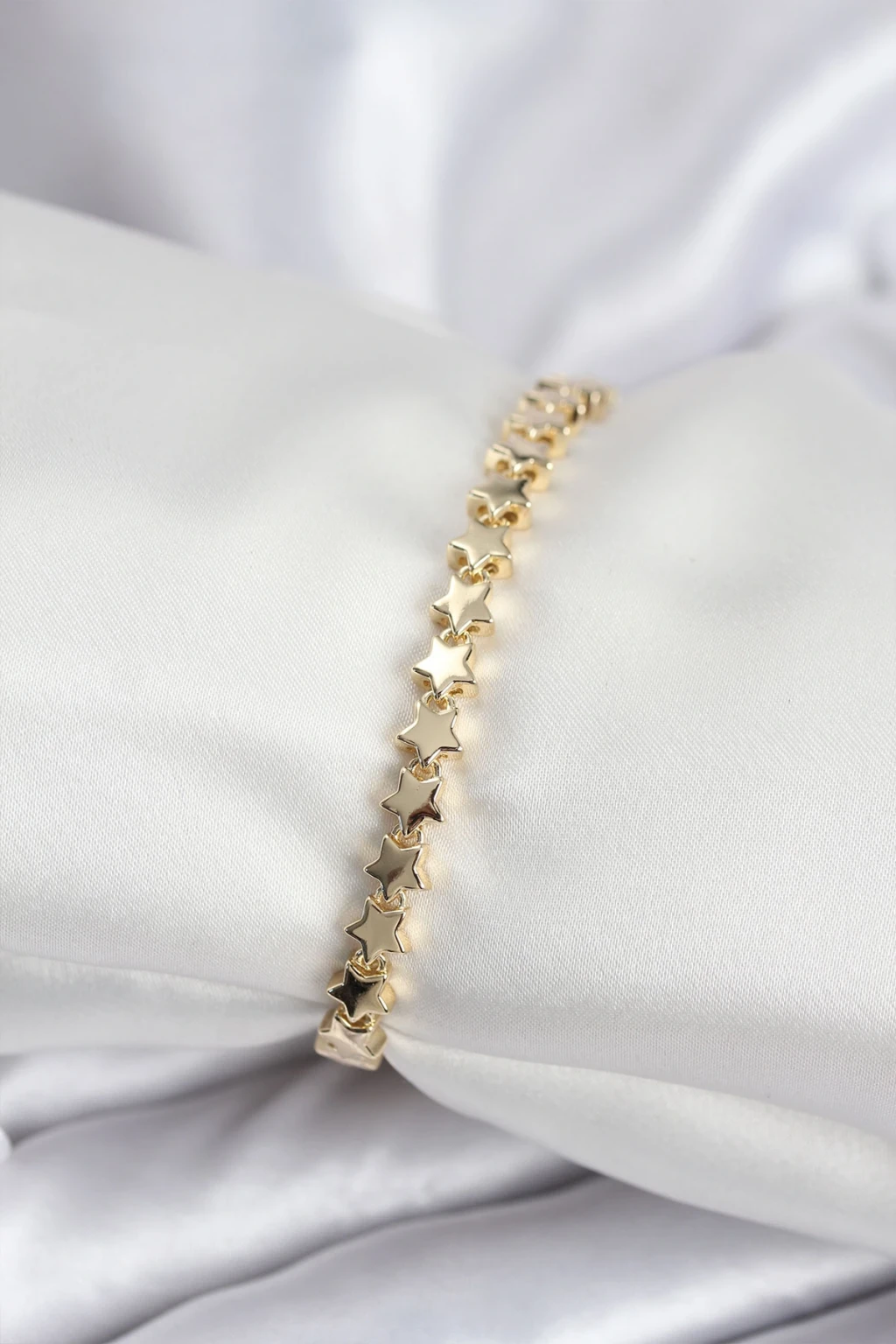 Pirinç VIP Seri Gold Renk Sıralı Yıldız Model Kadın Bileklik - TJ-BB7939