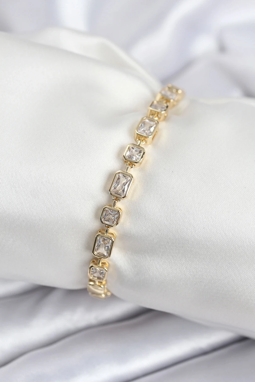 Pirinç VIP Seri Zirkon Taşlı Gold Renk Kadın Bileklik - TJ-BB7938