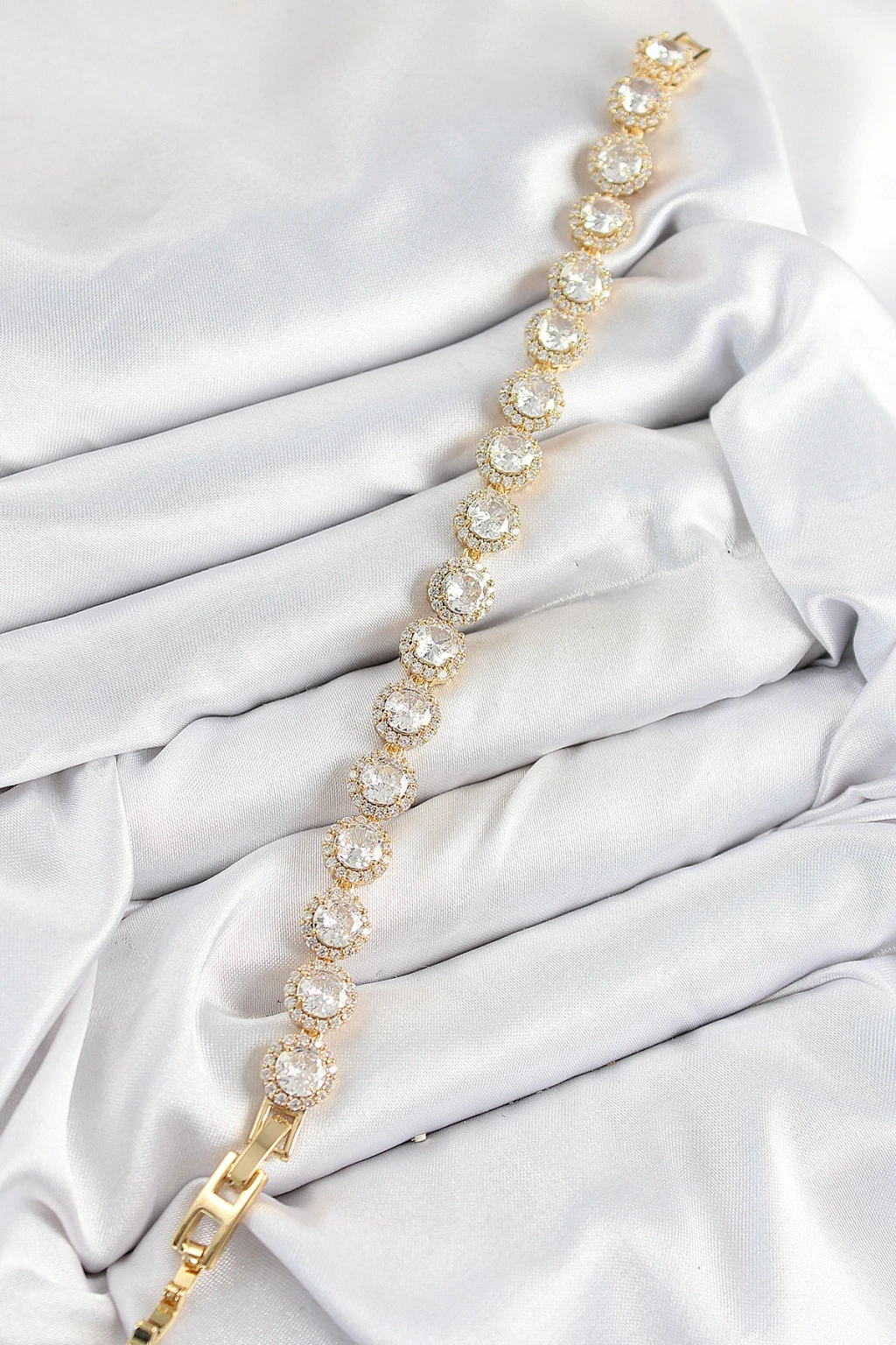 Pirinç Zirkon Taşlı Daire Baget Model Gold Renk VIP Seri Kadın Bileklik - TJ-BB7514