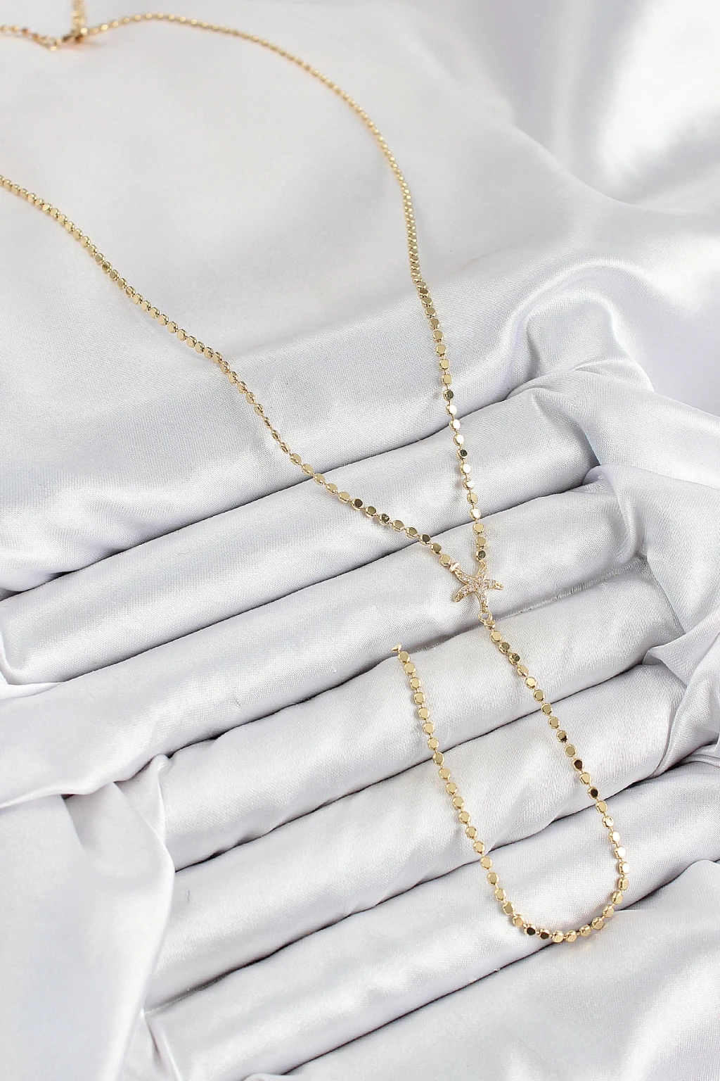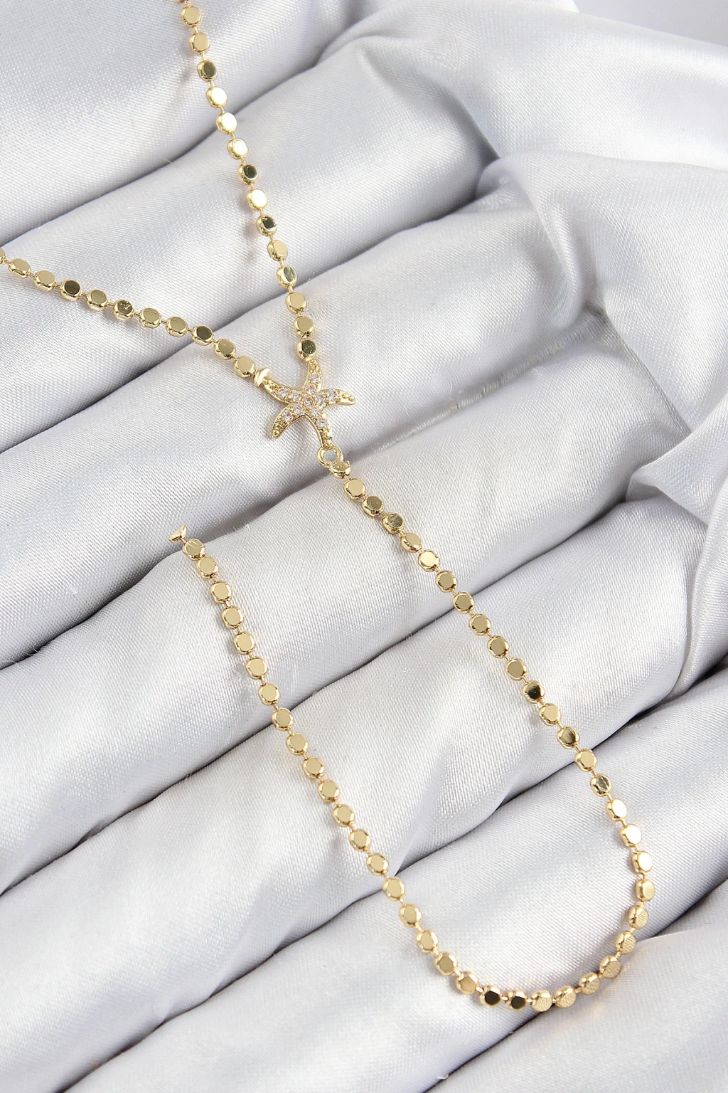 Pirinç Zirkon Taşlı Ezme Zincirli Deniz Yıldızı Model Gold Renk Y Kolye - TJ-BKO10467