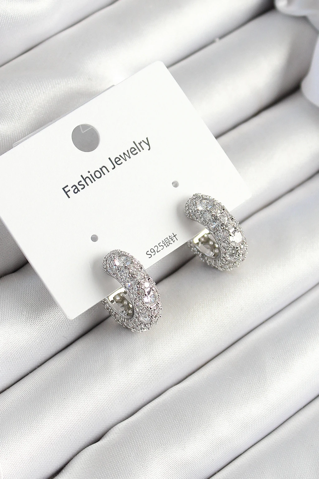 Pirinç Zirkon Taşlı Halka Model Gümüş Renk Kadın Küpe - TJ-BKP10633
