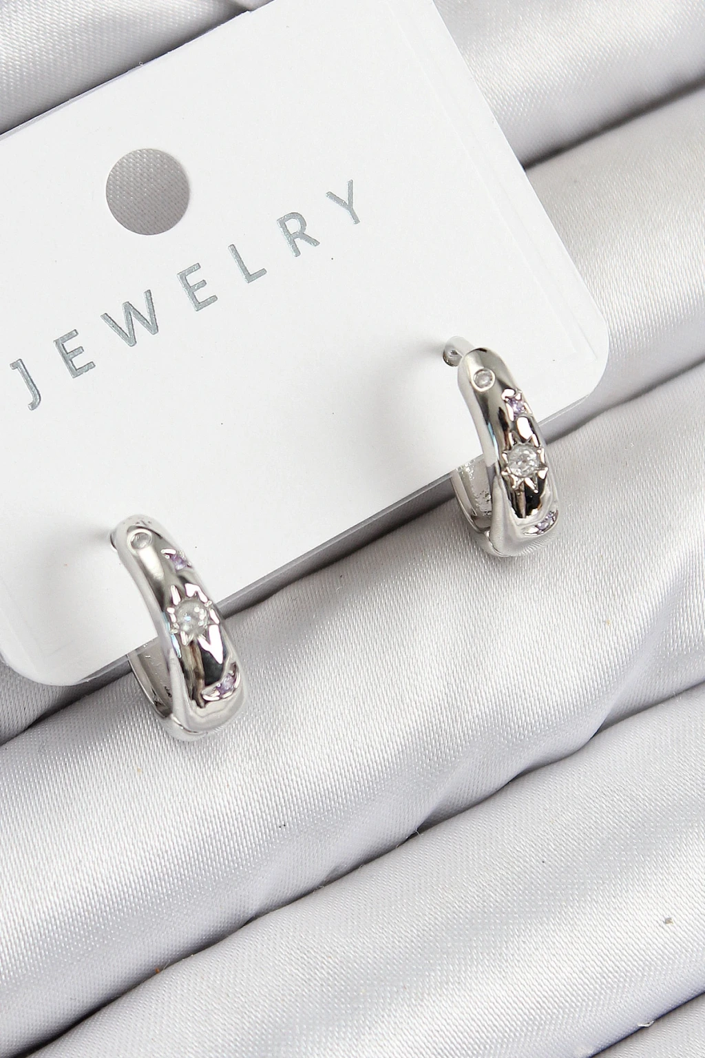Pirinç Zirkon Taşlı Halka Model Gümüş Renk Kadın Küpe - TJ-BKP11076