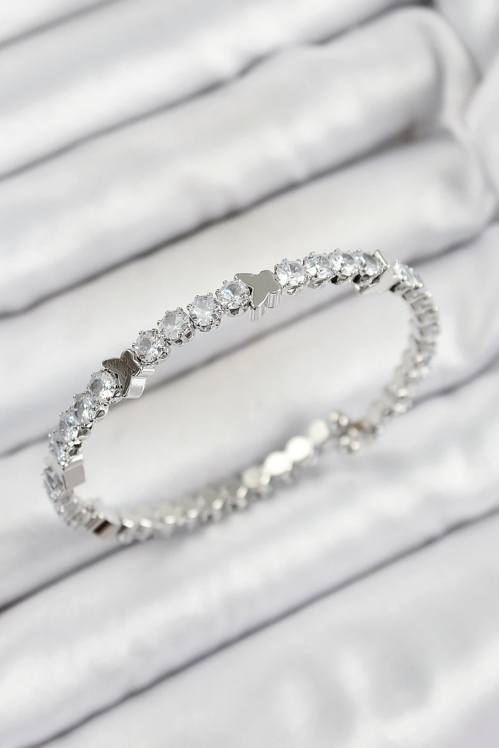 Kelebek Figürlü Zirkon Taşlı Gold Renk Pirinç Kadın Bileklik - TJ-BB8002