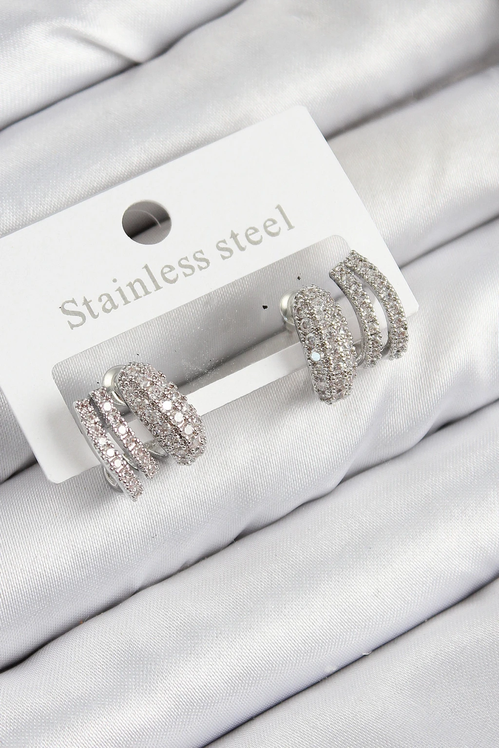 Pirinç Zirkon Taşlı Kıvrımlı Model Gümüş Renk Kadın Küpe - TJ-BKP11092