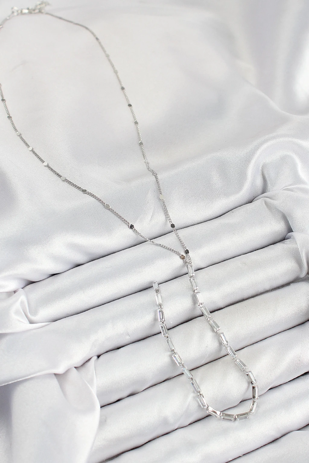 Pirinç Zirkon Taşlı Model Gümüş Renk Y Kolye - TJ-BKO10451