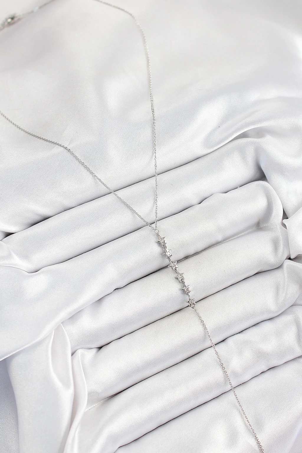 Pirinç Zirkon Taşlı Sıralı Yıldız Figürlü Y Model Gümüş Renk Kadın Kolye - TJ-BKO10321