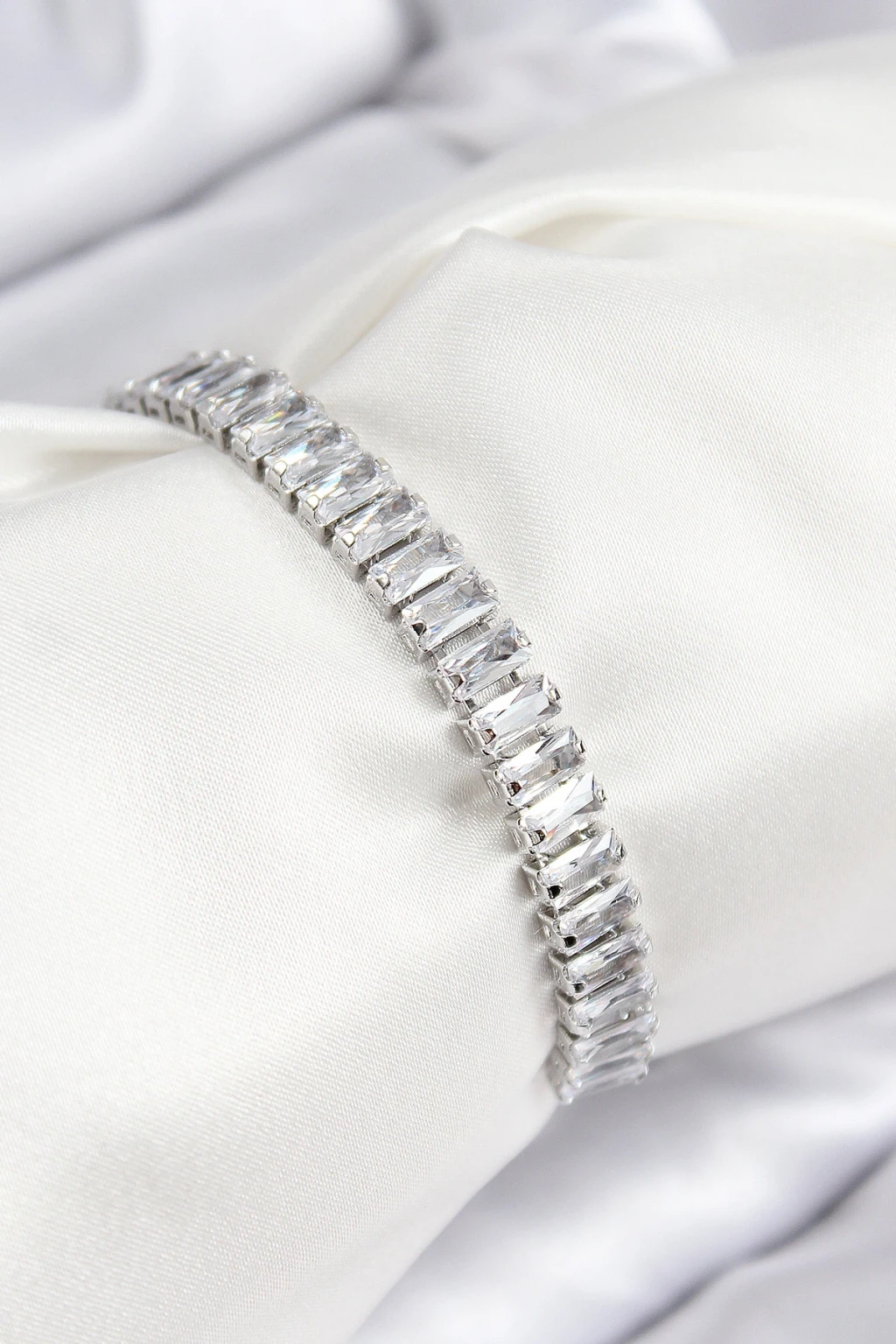 Pirinç Zirkon Taşlı Su Yolu Model Gümüş Renk Asansörlü Kadın Bileklik - TJ-BB7748