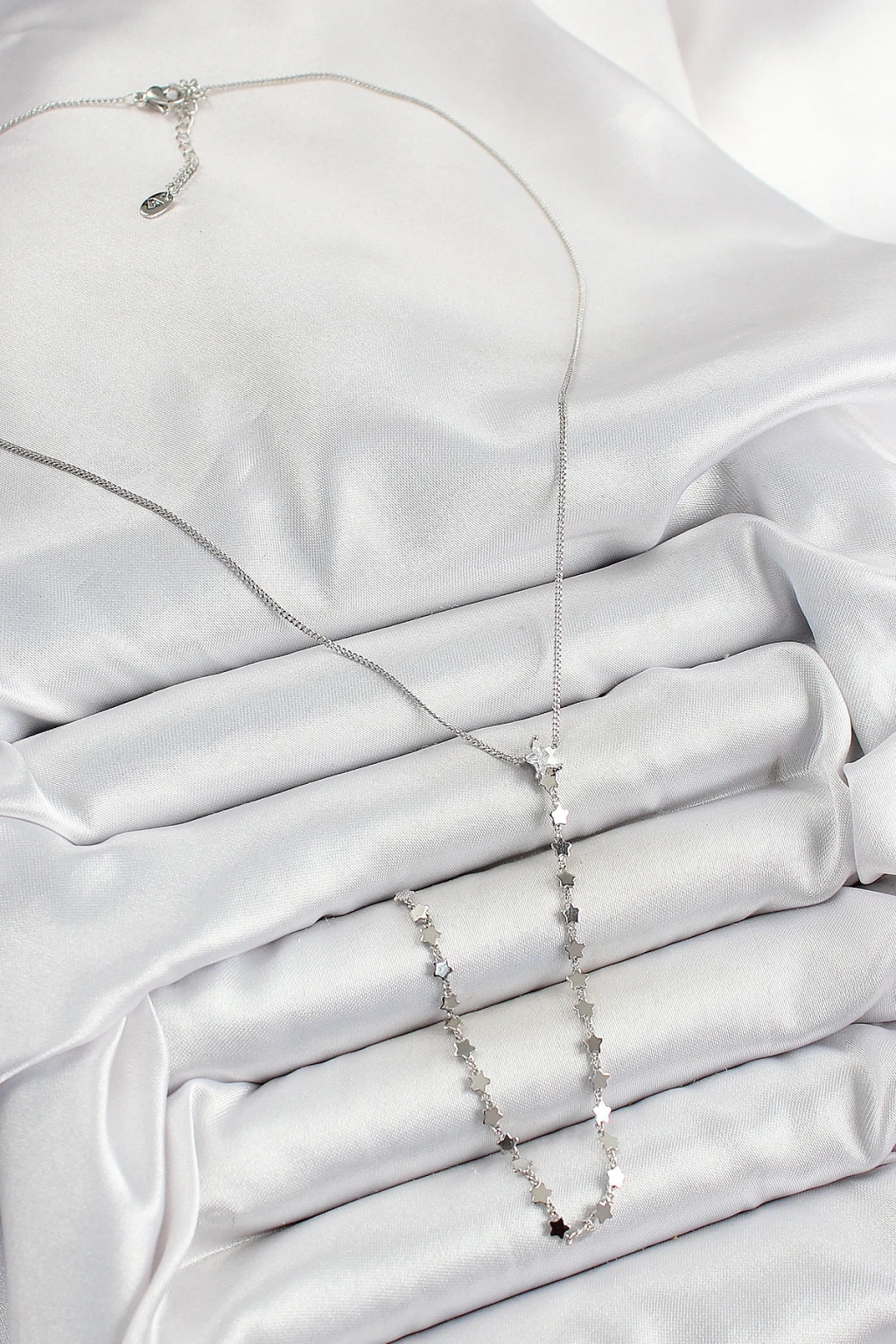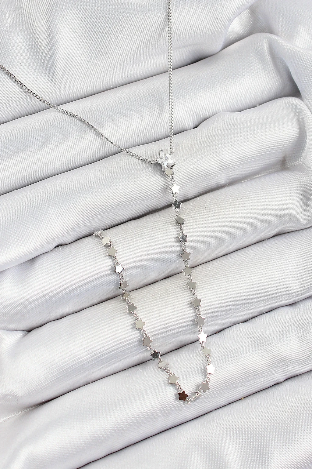 Pirinç Zirkon Taşlı Yıldız Figürlü Y Model Gümüş Renk Kadın Kolye - TJ-BKO10309