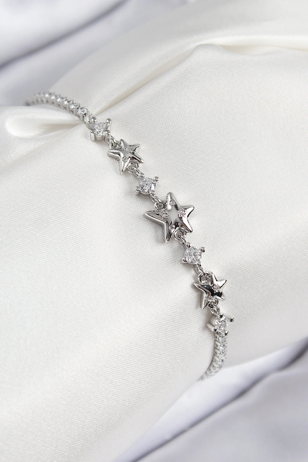 Pirinç Zirkon Taşlı Yıldız Model Gümüş Renk Kadın Bileklik - TJ-BB7706