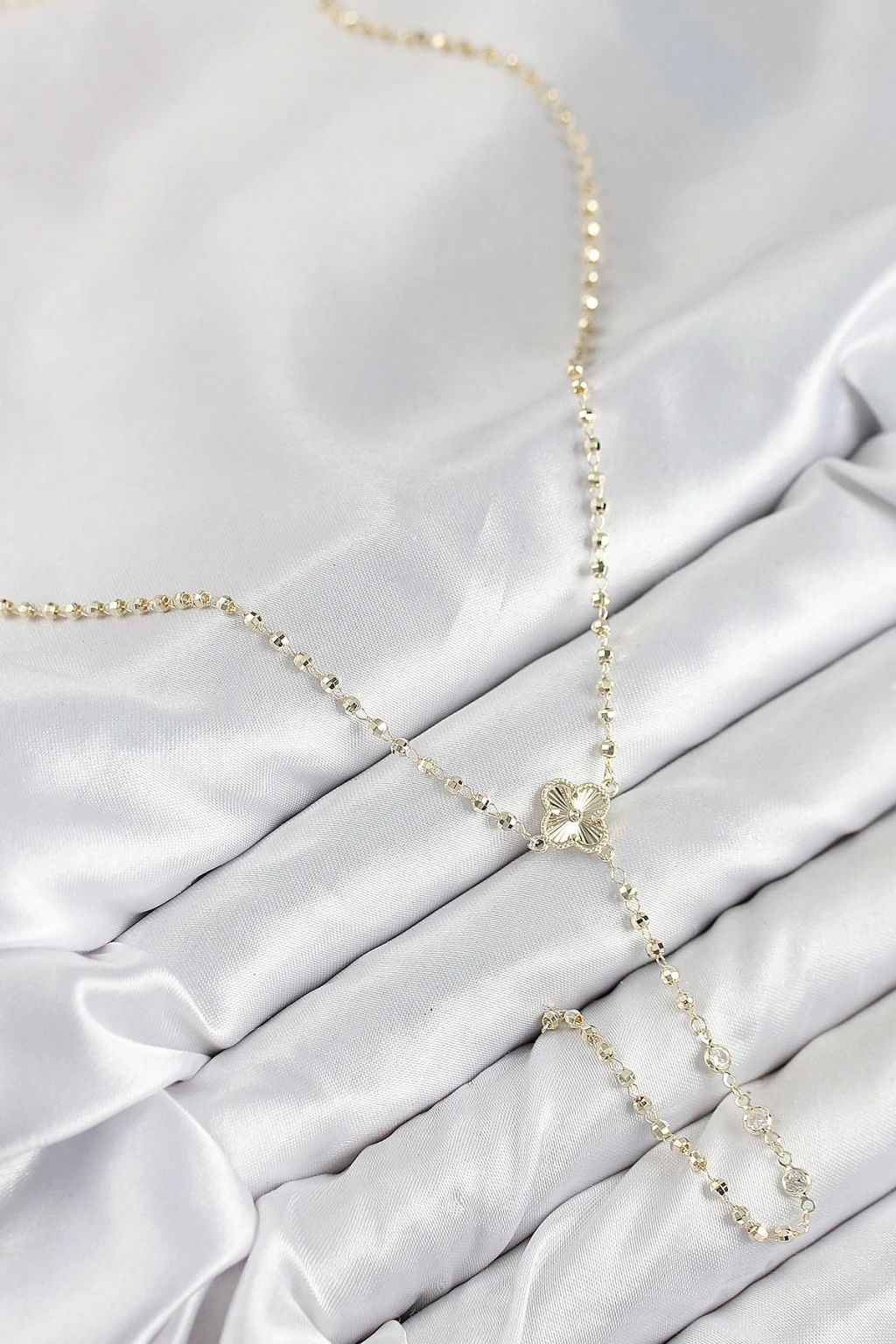 Pirinç Zirkon Taşlı Yonca Model Gold Renk Kadın Y Kolye - TJ-BKO10499