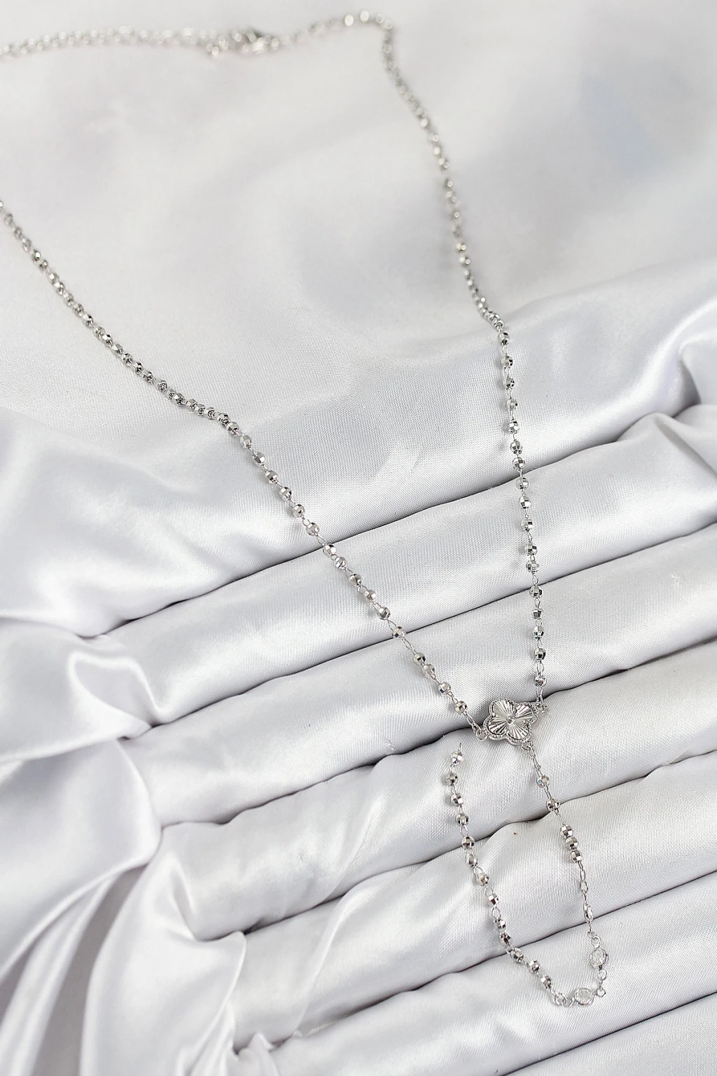 Pirinç Zirkon Taşlı Yonca Model Gümüş Renk Kadın Y Kolye - TJ-BKO10498