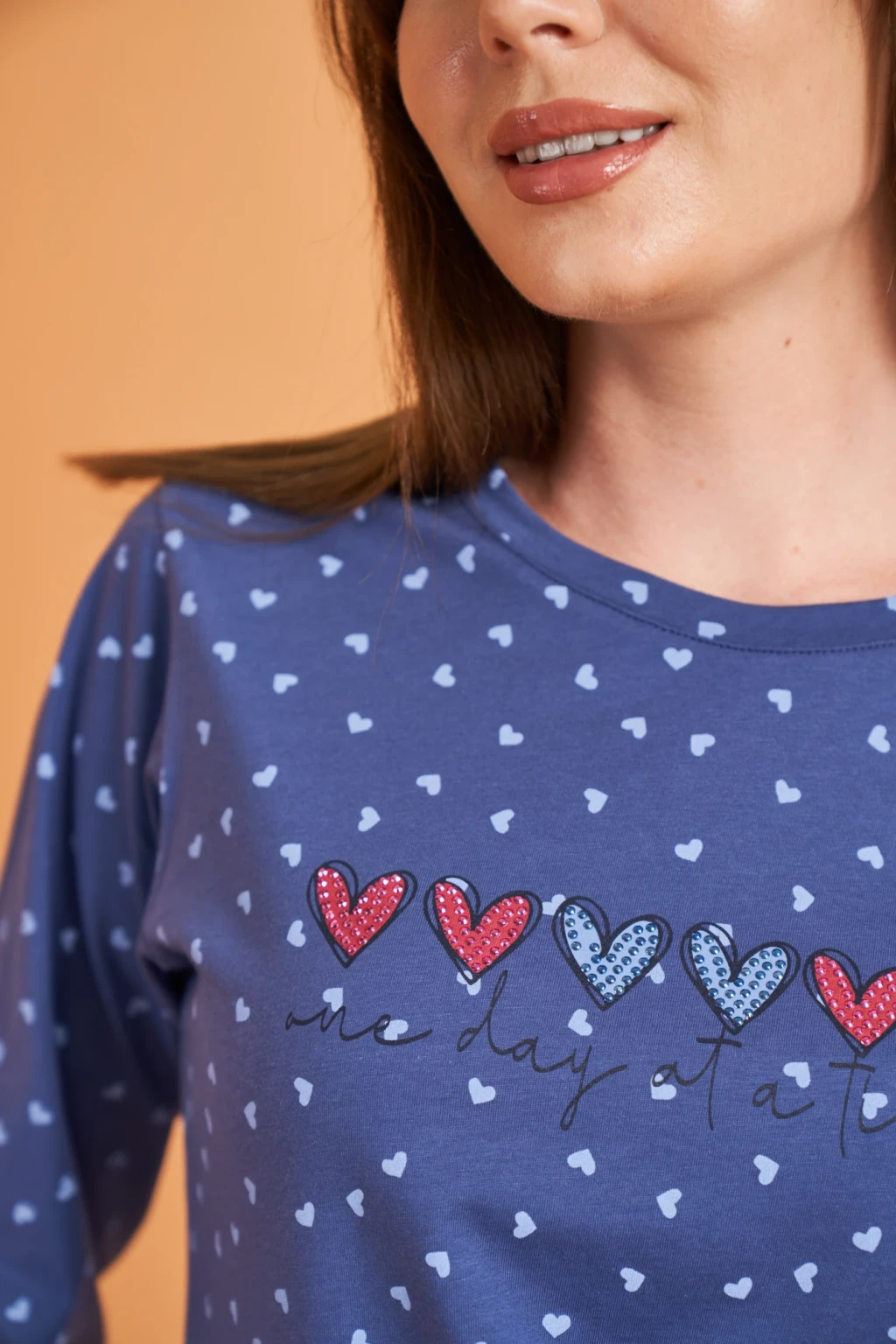 Pjs 28081 Kadın Uzun Kol Yuvarlak Yaka Kalpli Pijama Takım