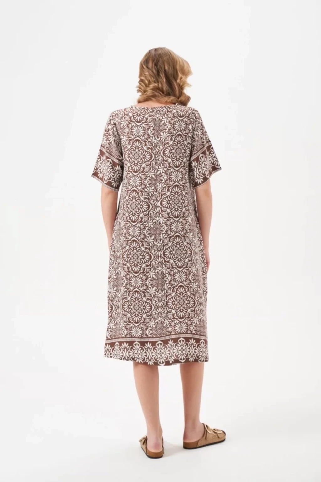 Etnik Desenli Truvakar Kollu V Yaka Elbise