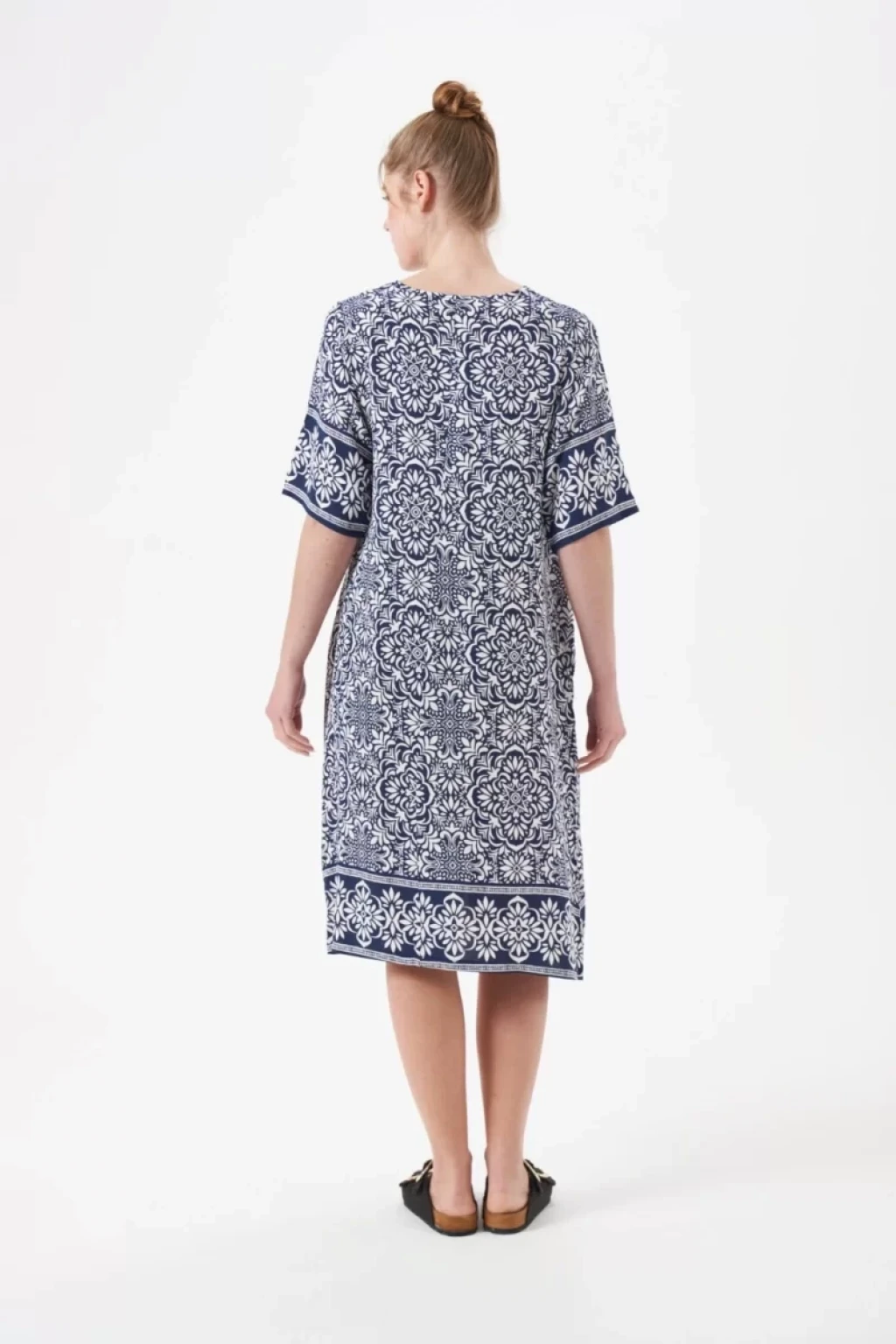 Etnik Desenli Truvakar Kollu V Yaka Elbise